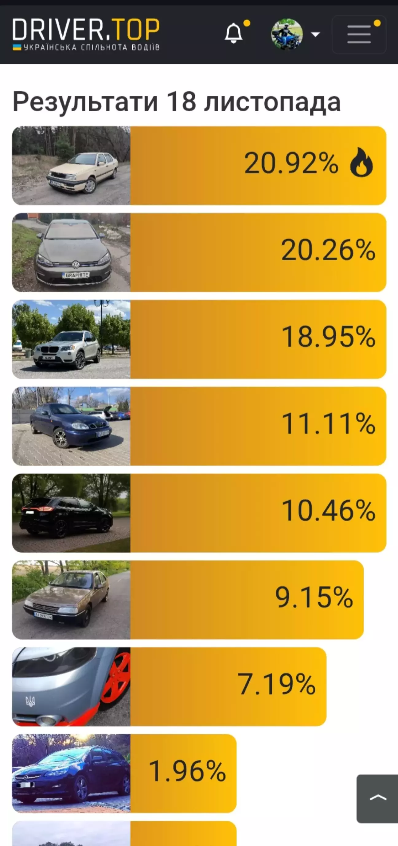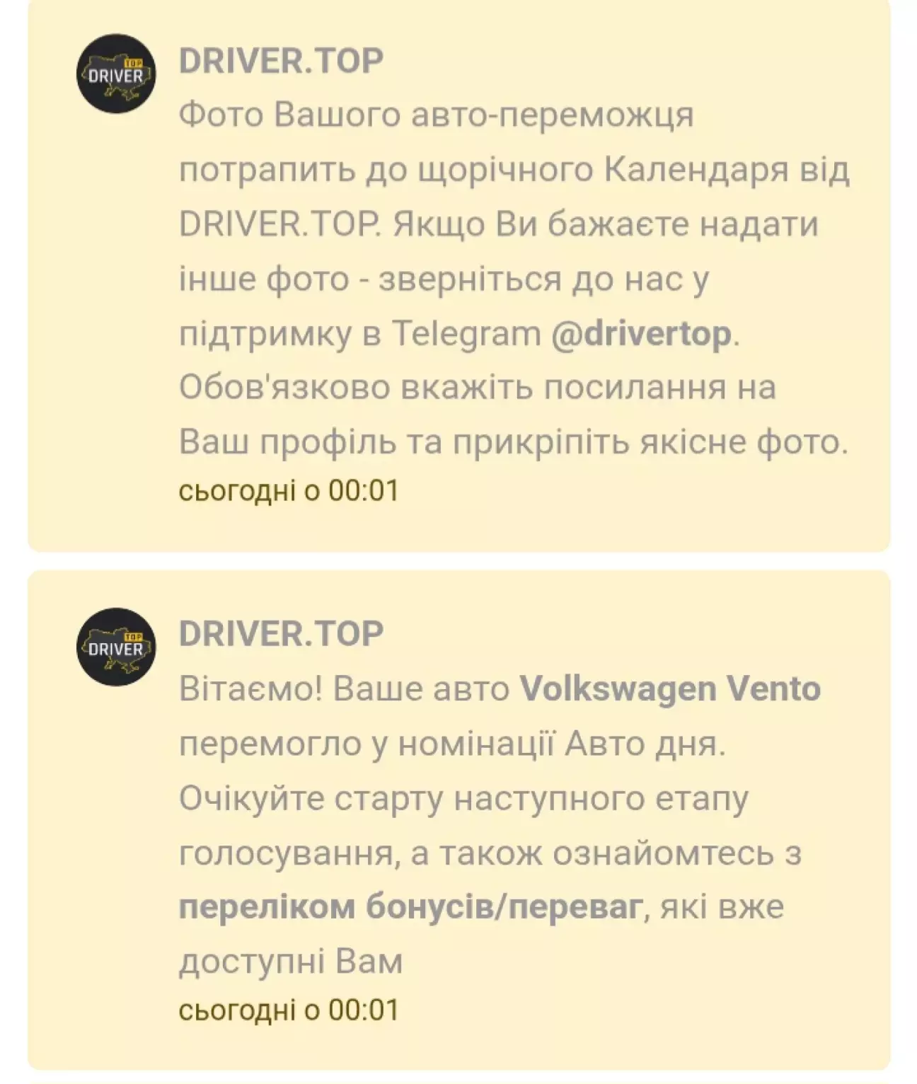 Перемога, Авто дня 18 листопада 2025р! Сьогодні мій Венто красується на першій сторінці Driver.TOP! Авто потрапить в календар Driver.TOP! Згадалась гра NFS Underground 2, де авто потрапляло на обкладинку журнала) Наче дрібниця, а прикольно) Дякую всім, хто проголосував за нас!