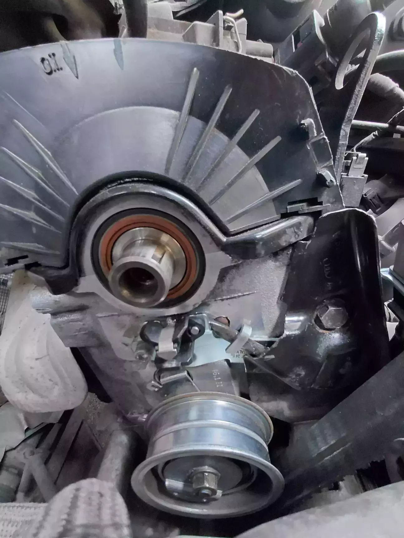 Читал что ДПРВ можно заменить без снятия шкива распредвала, то есть болт открутить не полностью и максимально отодвинуть шкив на себя, но что б он оставался находиться на распредвале. Попробовал я так сделать, но места между шкивом и датчиком всё же очень мало для того что б открутить шестигранником крепление датчика. В общем не стал я с этим заморачиваться и снял шкив.