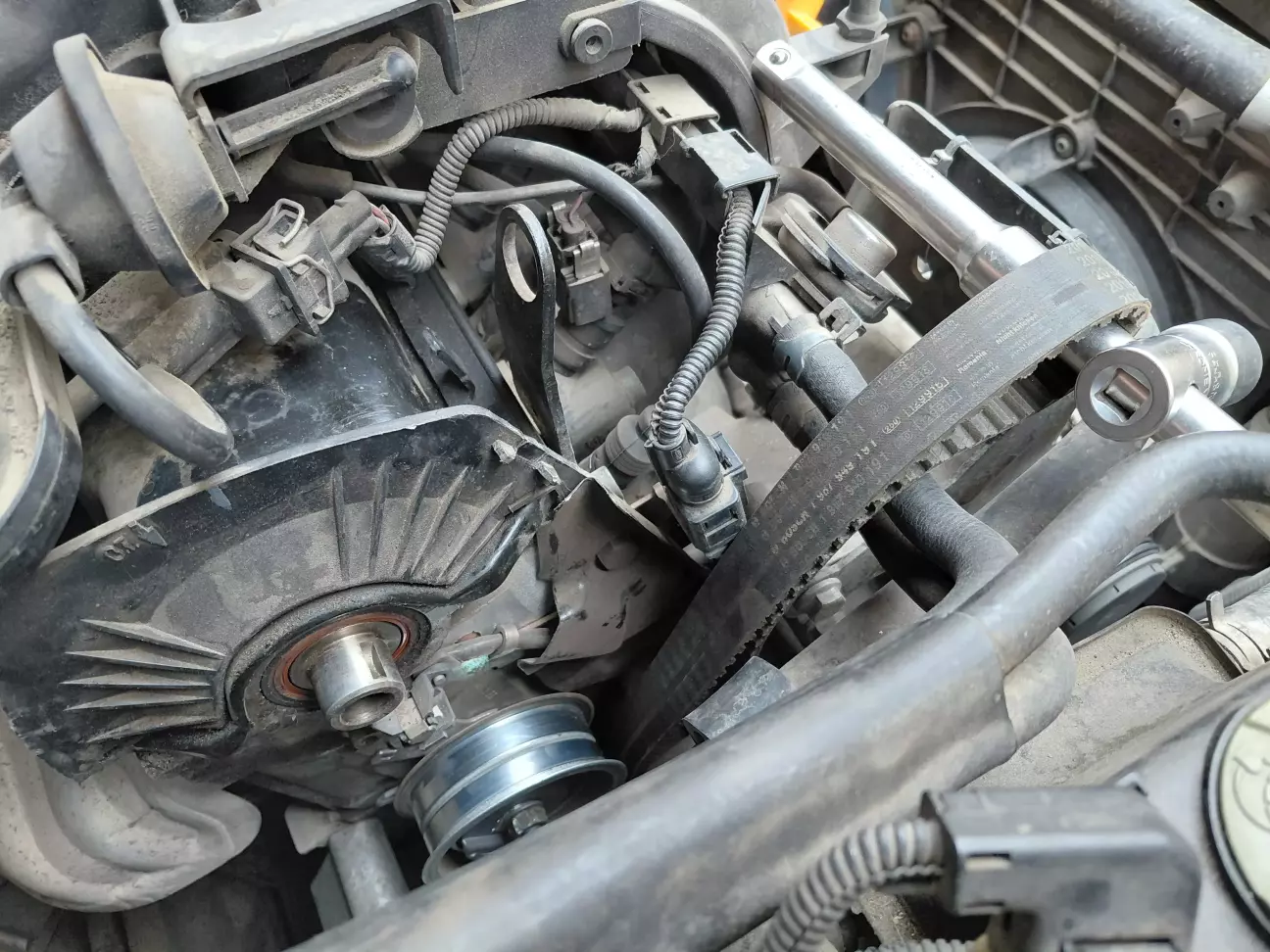 Датчик положения распредвала на двигателе 1.6 находится под шкивом распредвала что собственно и усложняет его замену, так как для этого необходимо скидывать ремень ГРМ и снимать шестерню распредвала.