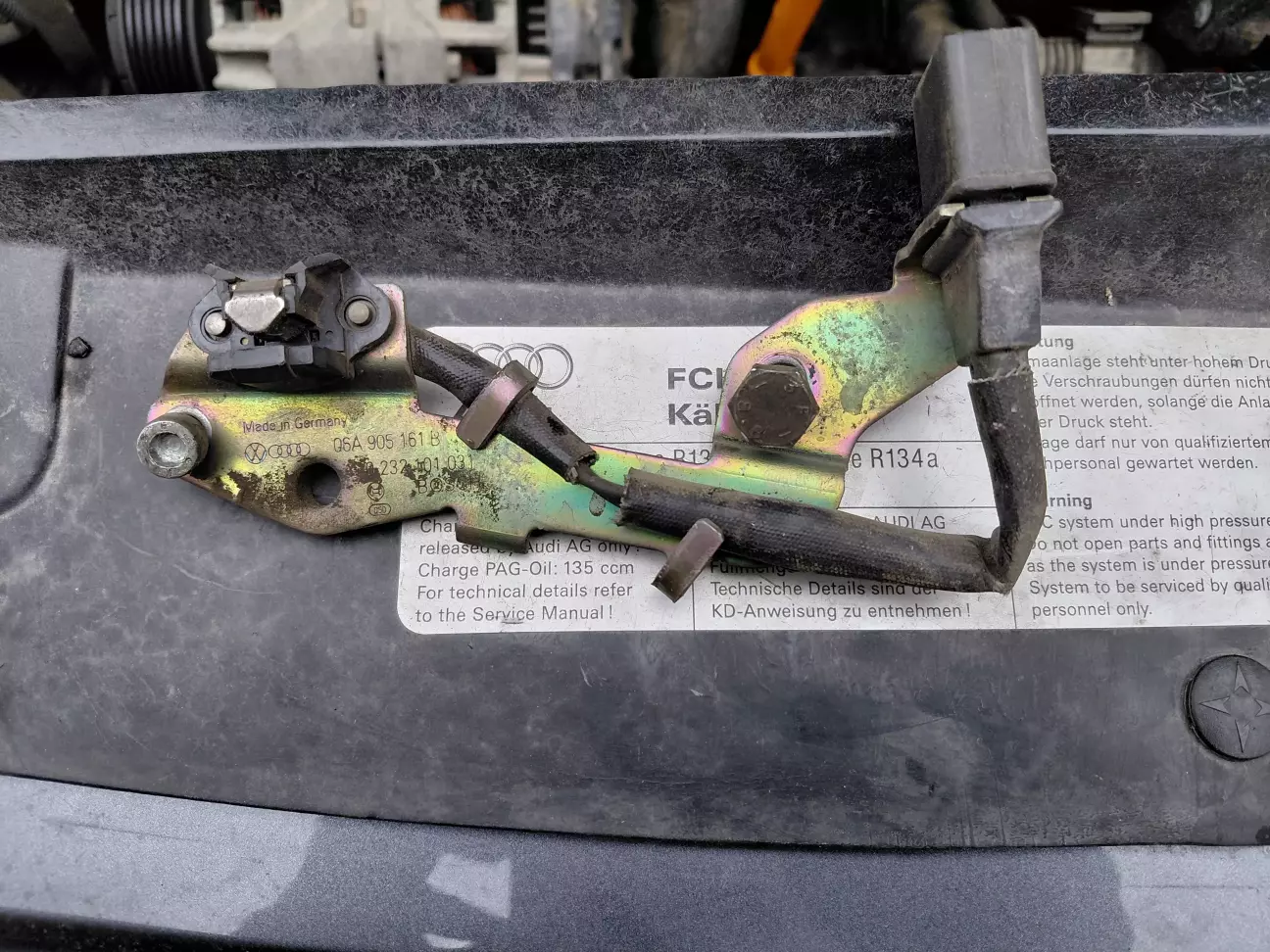 Отсоединив датчик от разъема и открутив болты слегка отодвигаем стальную пластину с правой стороны датчика и достаем его.