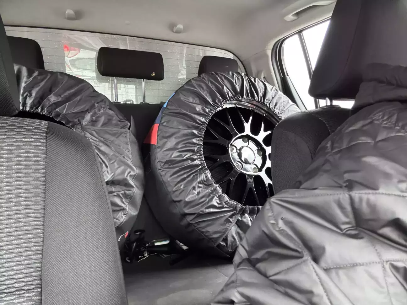 У мене в квартирі нема балкону заскляного або просто місця для зберігання колес і барахла, тож я повіз колеса до друга в гараж. Там сухо, норм. температурний режим і достатньо місця. Оскільки колесо в зборі (диск + гума), то без чохла зберігати не хотілось.