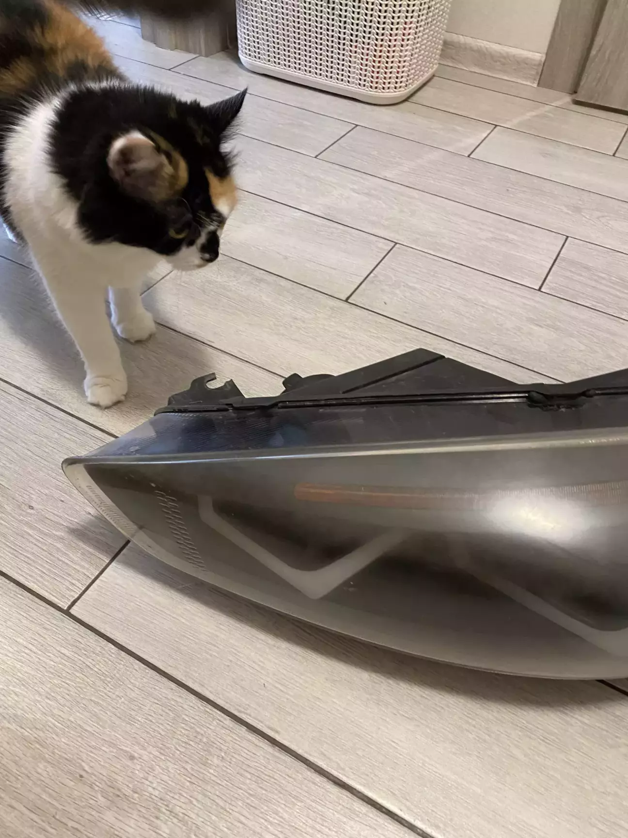 Зняв фари, замахнув замість них пакети, бо на вулиці дощ йшов 😁