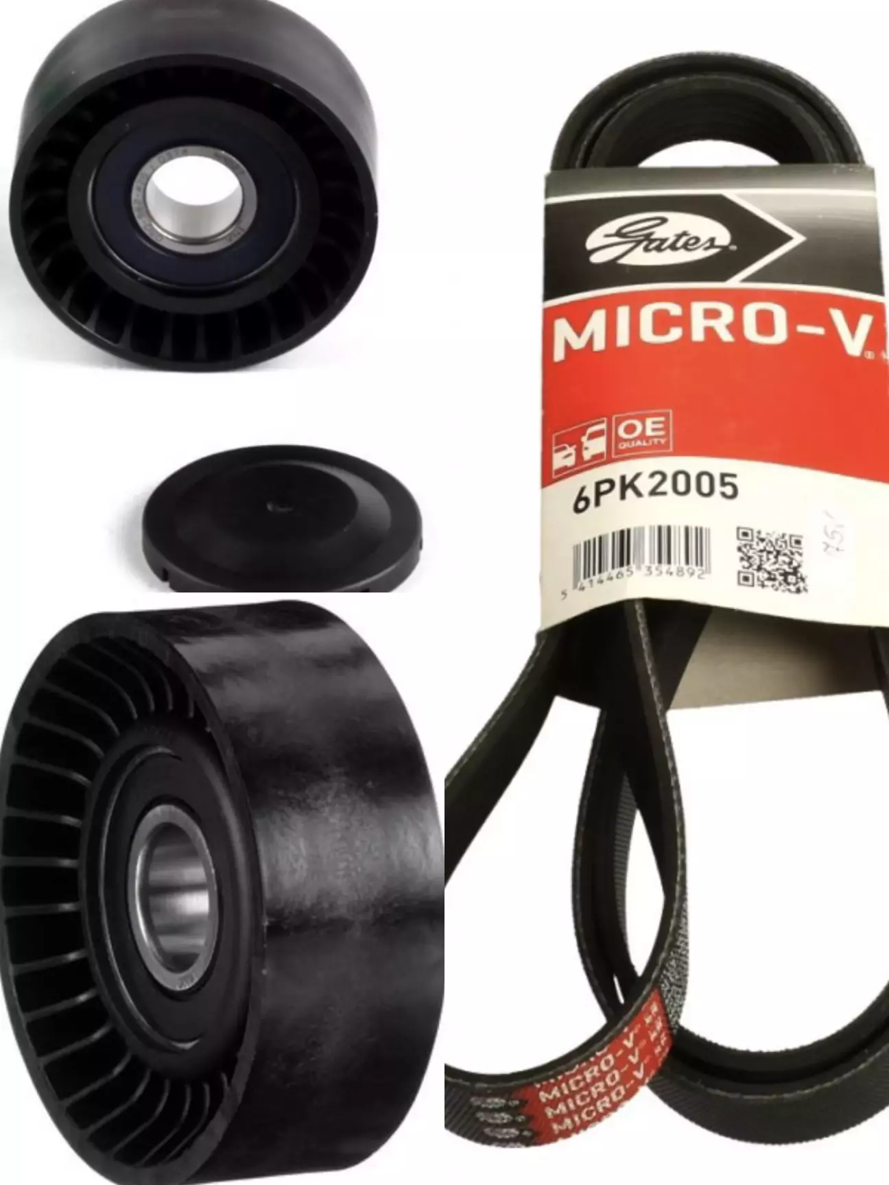 Обвідний ролик (більший) поставили Gates T38018 (7803-21018). Встав нормально. Ремінь поставив Gates Micro-V 6PK2005. Які запчастини стоялі на авто, не сфоткав, забув.