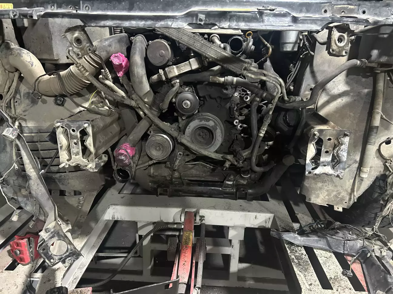 Коли знімав радіатор побачив, що стоїть гвинтом рамка кріплення касети,- поліз далі і на тобі,- нижній пятак лівого лонжерону замьятий…..