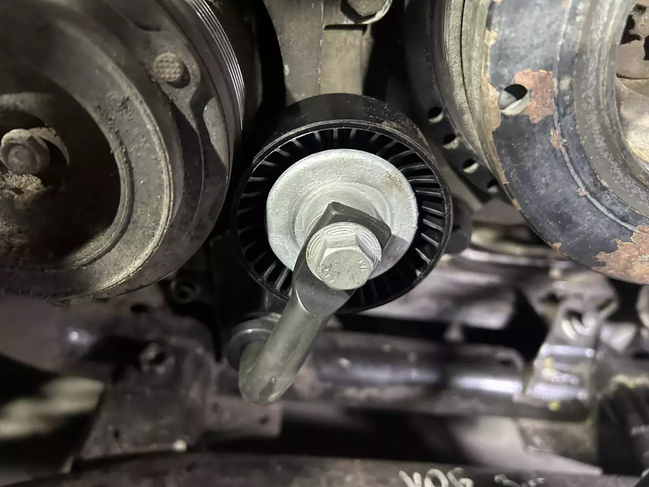Ролик що стоїть на кронштейні компресора кондиціонера прийшлось знімати к кронштейном та відбивати