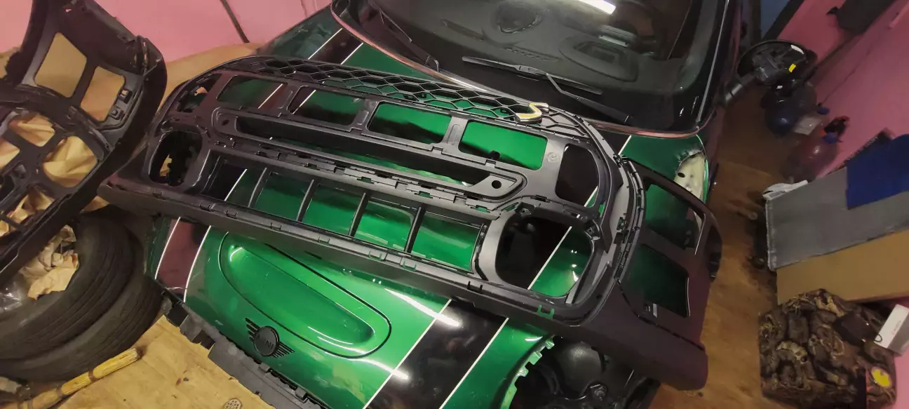 Подивився навіть в нього JCW бампер - ну теж задовільно. Чіпляти обшарпаний бампер на машину з 16 тис пробігу - не комільфо, але ціна теж більш ніж адекватна. Зідзвонюємось, питаю що буде, якщо перевдягнути ліпістрічку в круг в JCW - один такий екземпляр я бачив навіть в Україні.