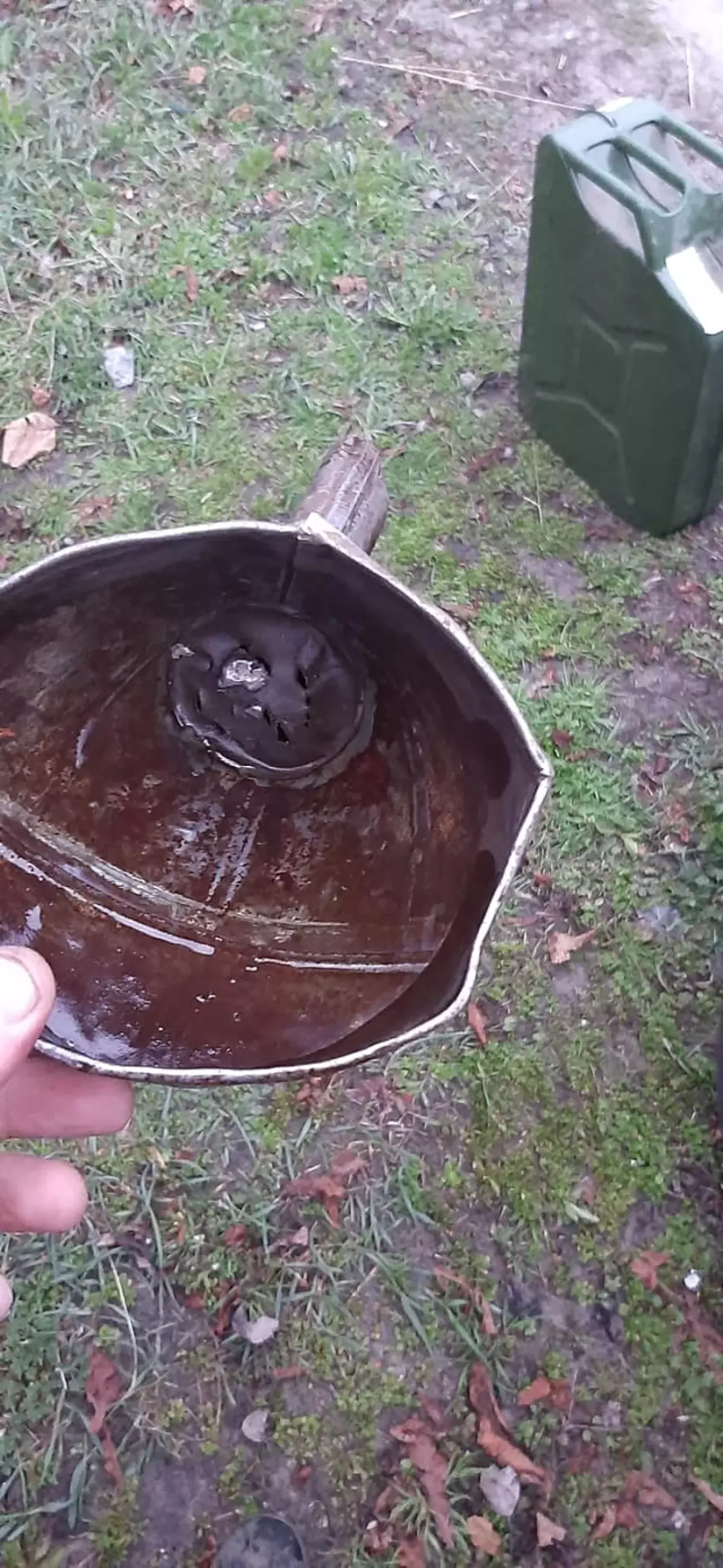 Поспіхом здмухнувши пил, мчу до машини, намагаюся якось залити балансуючи важкою каністрою, але бензин замість "в бак", тіче по машині і мені на ноги. Коли прийшло прийняття факту що залити домашнього бензинчику недоля, я почав розглядати лієчку.