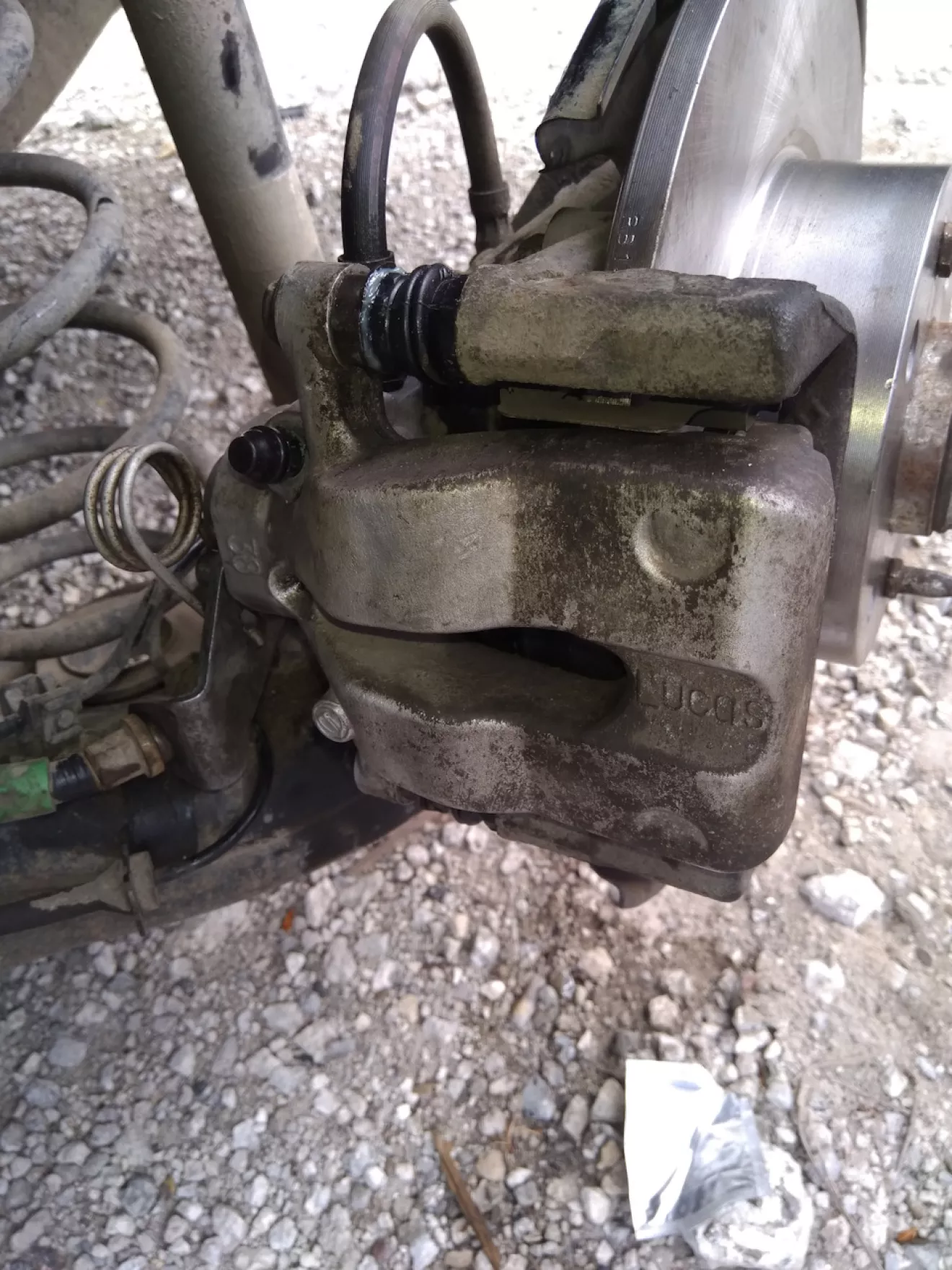 Стойки были поменяны почти сразу, тормоза получилось поменять только недели 3 назад, и как обычно не без приключений. На левом суппорте был порван пыльник и чуточку подран поршень. Естественно новый комплект переборка и установка назад, заодно и замена всей тормозной жидкости.