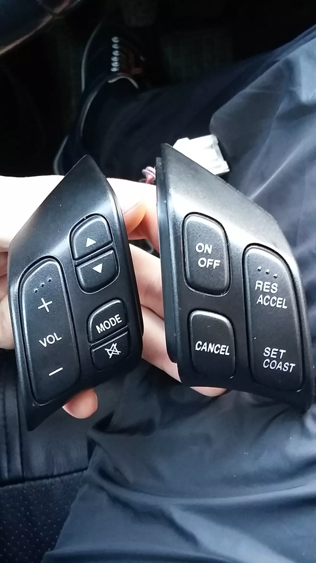 Кнопки с мазды 6, продавец (www.drive2.ru/r/mazda/853909/) перед отправкой сделал перепиновку за что ему +100500 респекта, осталось только припаять массу на оголенный провод.