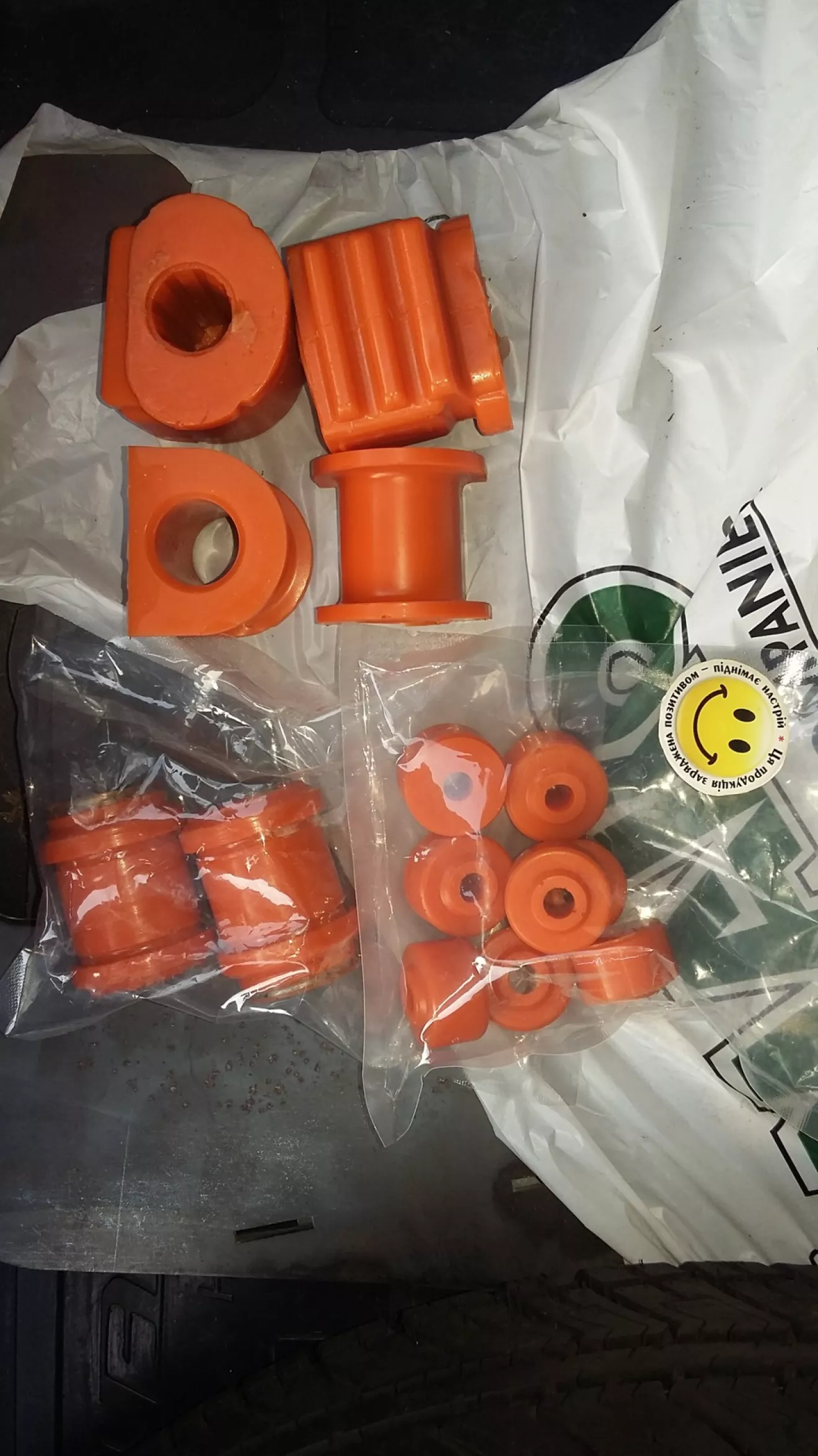 Раньше имея дело с полиуретаном, решено и тут заменить изрядно поношенные сайленты пока только передней подвески. Теперь дело за малым найти время на их установку :)