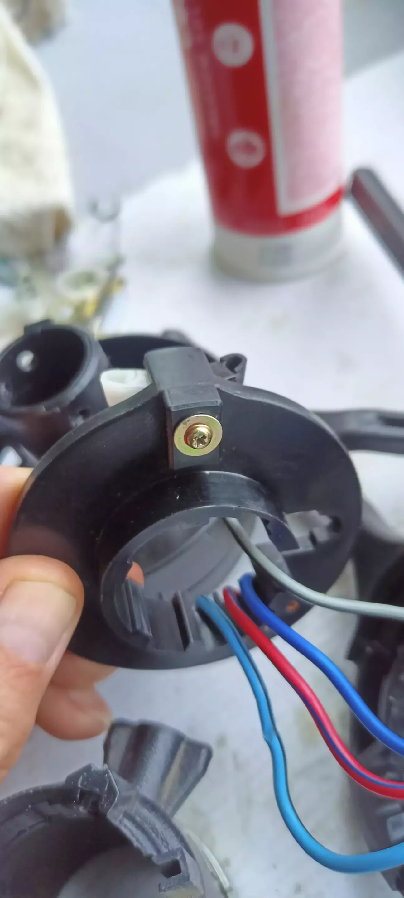 Був ще зламаний механізм автоматичного відключення поворотів. Відремонтував його. Замінивши зламані фіксатори на тонюсенький саморіз з великою шляпкою, здається від корпусу якогось старого компа. Просверлив пласмаску тоненьким сверлом, і в нього закрутив саморіз. Глибиною закручування саморізу, відрегулював сам механізм повернення поворотників. Зібрав, все прозвонив, все чудово працює.