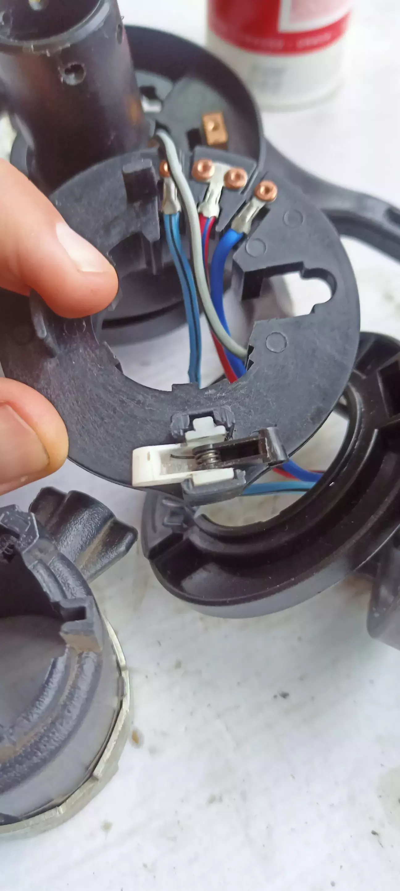 Коли розібрав то зрозумів, що в мене проблема в перемикачі бути не може. Як би знав його будову, то зрозумів би це раніше. Розбирати його та ремонтувати , відносно не складно. Головне інструмент щоб був, та хист. Все промив, почистив контакти, потім змазав де треба, контакти також пройшовся мастилом, зооовсім легенько. Трохи промазав потім легеньго протер, щоб лишився наліт мастила. Це для меншого зносу від тертя, бо там контакти не затискаються а ковзають. Хоча на диво, ані скілечки не вироблені.