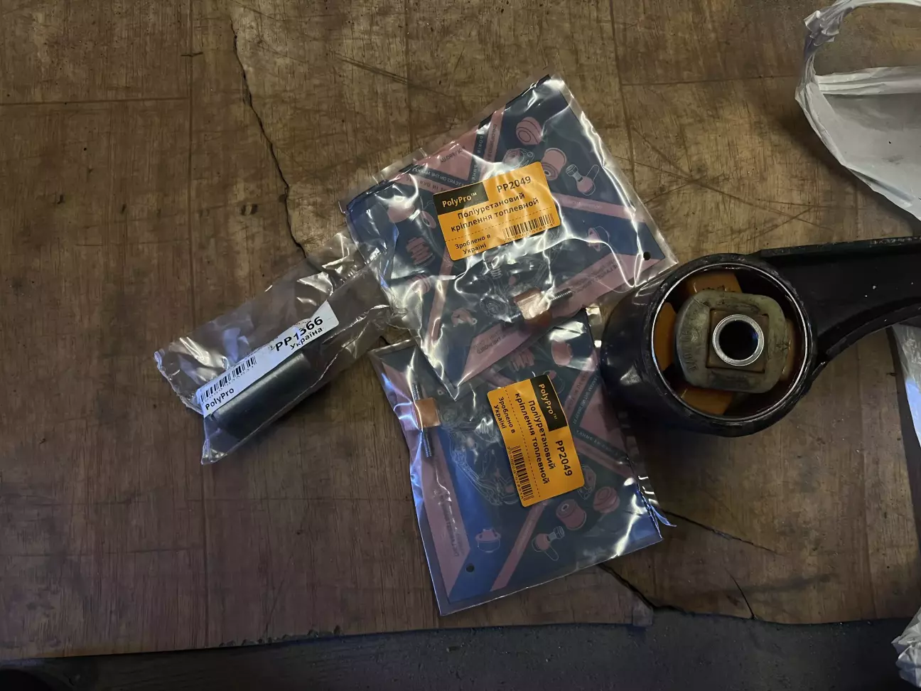 Можливо виточити втулку у токаря і ставити сайленблоки з 75kW, купив поліуретановий сайленблок запресували в правильно положенні і замінили. Сайленблок кпп (маленький) теж був куплений поліуретан але не замінив, оригінал в хорошому стані і у нього втулка внутрішня товщиною 5мм, поліуретан значно тонше. Ще замінив на поліуретан підвіси захисту двигуна, по лівій сторі складно замінити.