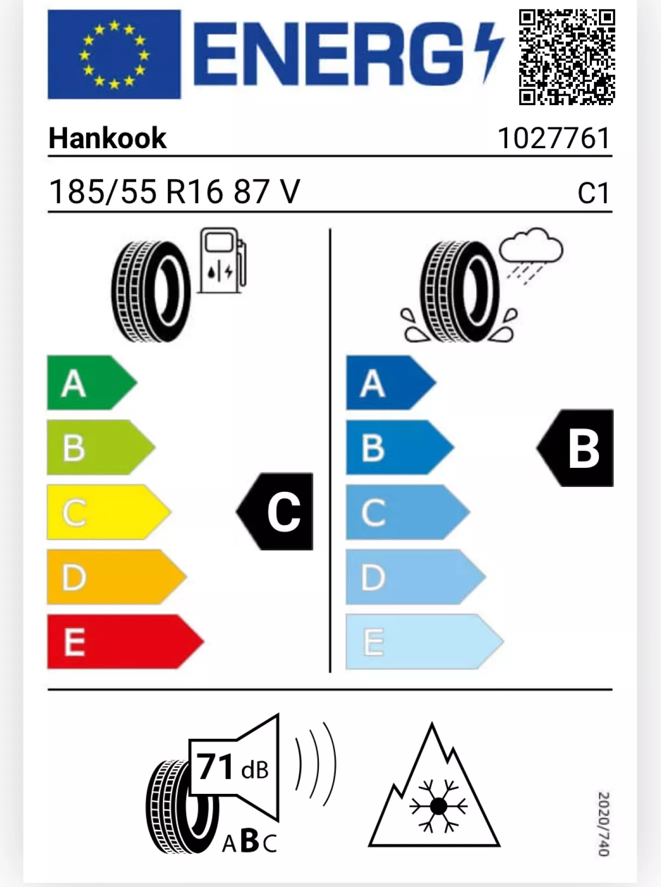 185/55 R 16 87V . По отзывам шина хорошая, HANKOOK шины премиум класса не должны подвести. цена 387 €
