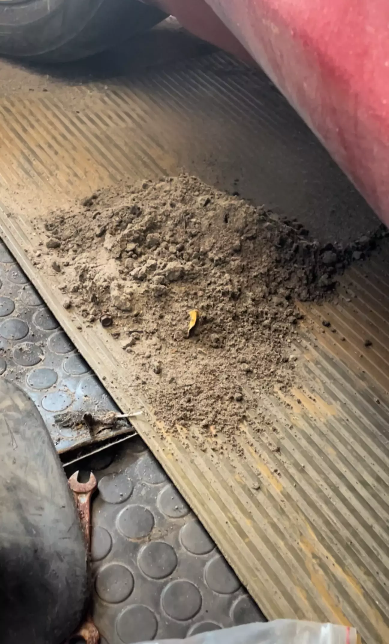 Знявши підкрилок, виявилось , що моя машина возить з собою відро баласту у вигляді землі яка заховалась за підкрилком.