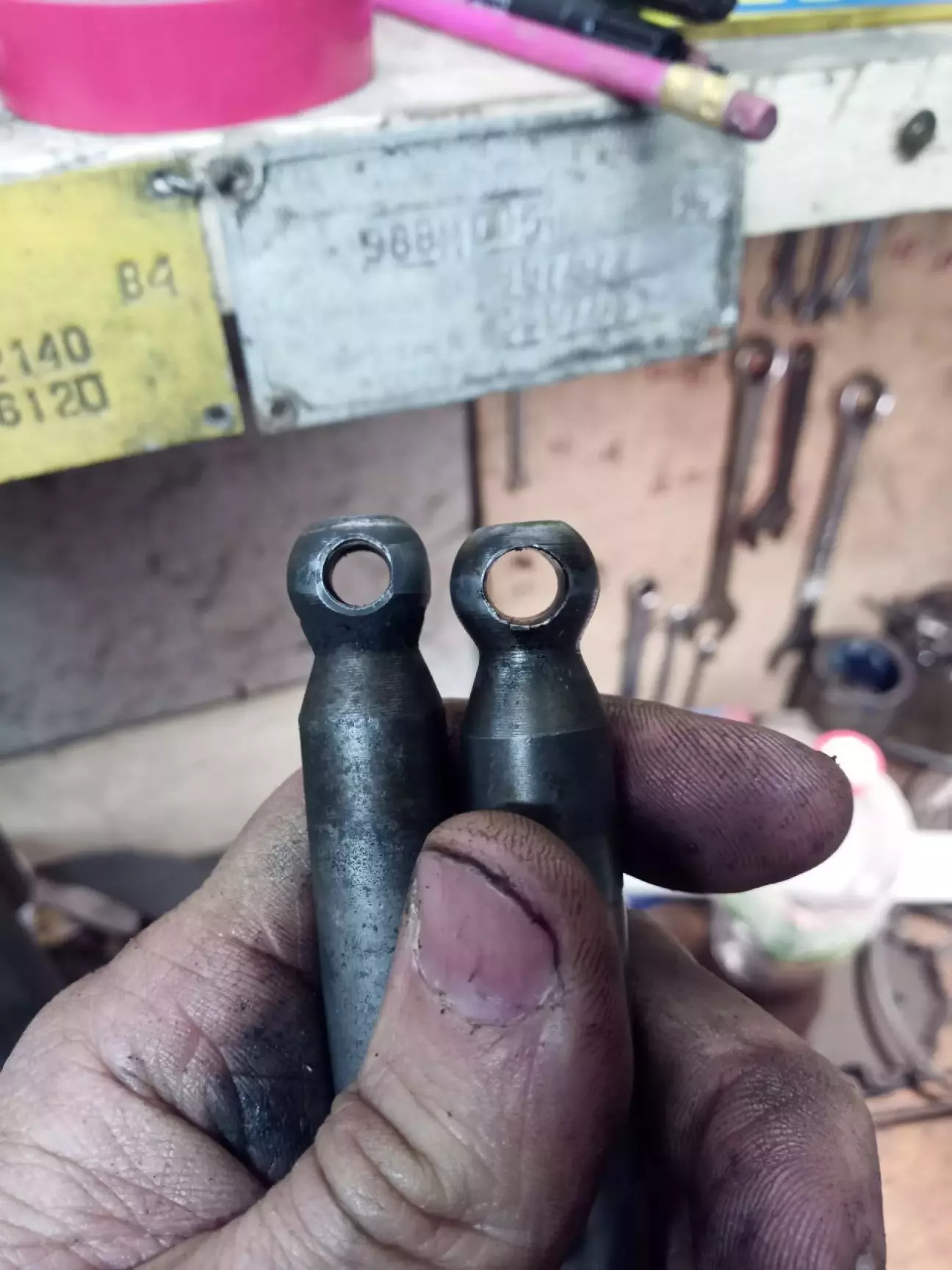 після вставновлення коробки я дійшов нарешті до втулок куліси...и зрозумів що ще й тут чекають пригоди.попередні власники відрізали рідний шарнір куліси,і приварили щось іньше,меньшого діаметру.відповідно нови вкладиши просто пролітають крізь шарнір.дооообре,мені вже всеодно,купую кулісу(пощастило знайти від м46)