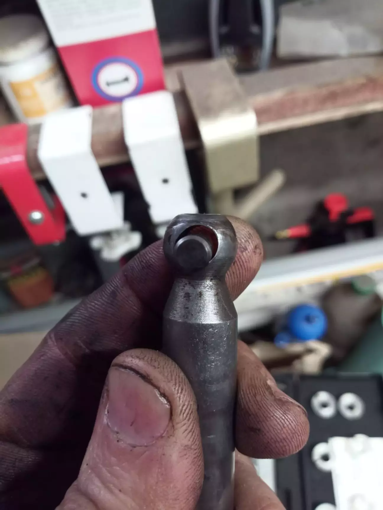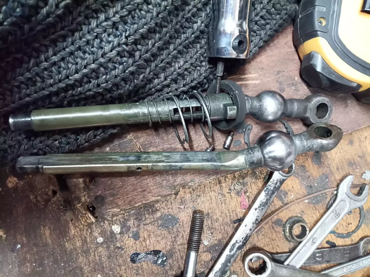 розбираю шарнір,и усвідомлюю що отвори пид обидва штіфти розбиті вщент.сумний знімаю верхню кришку,вид`єдную овердрайв.дістаю тягу з коробки,попутно радіючи як у коробці все гарно