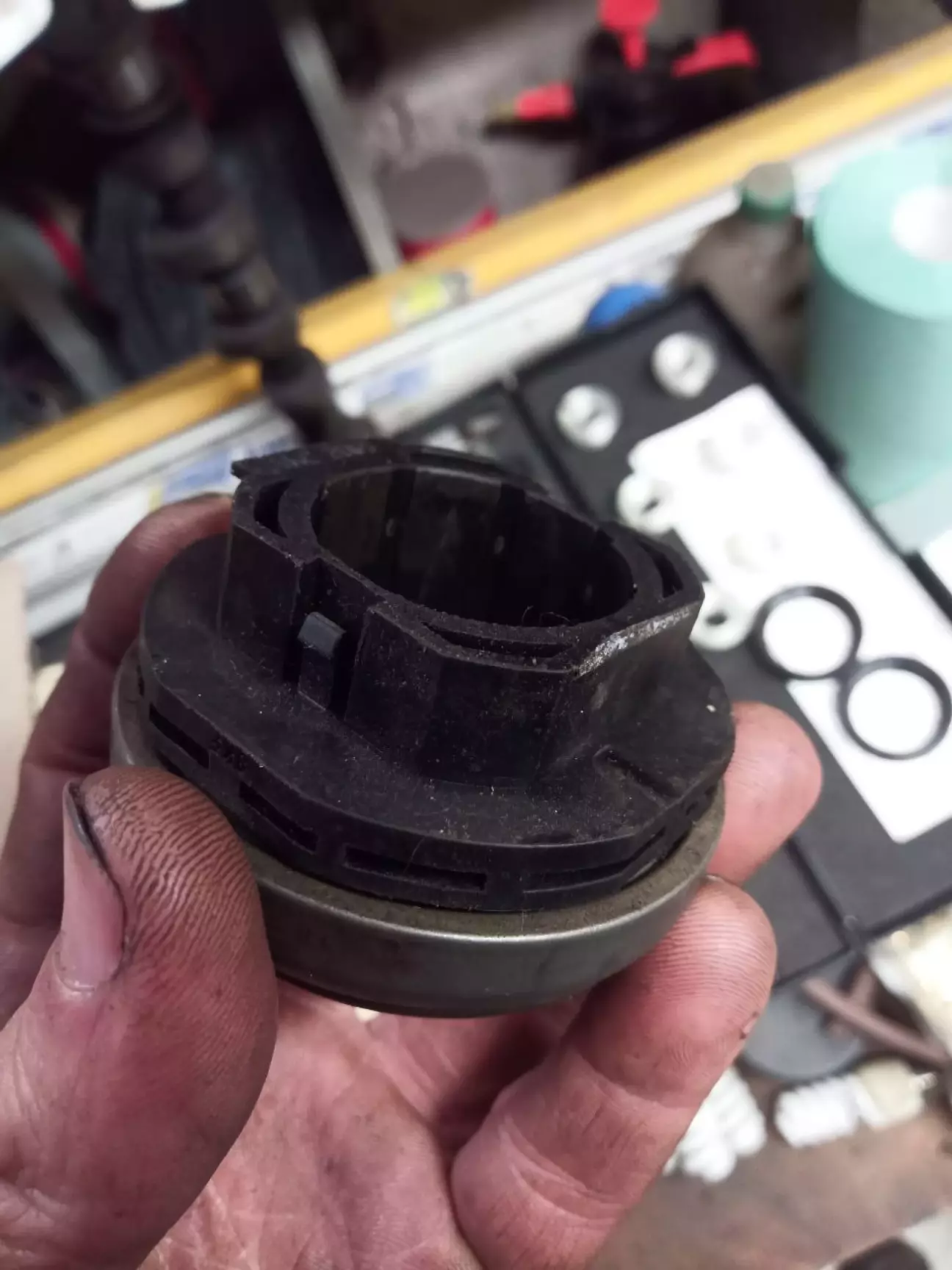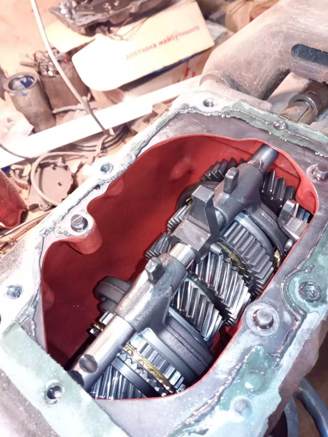 оскільки вмене нема ями-встановлювати коробку це ще та пригода.4 дні пішло на вставновлення,під час якого я для того щоб довернути коробку навколо своєї вісі узял лом,і не помітив що приклав зусилля до важилю зчеплення-зламав лапку на вижимному підшипнику.довелось ще й його замінити