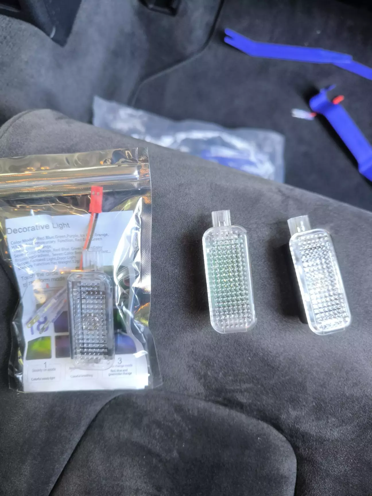 На али заказал еще 2 подсветки двери(потому что стоковые отличаются от купленных на али),подсветка ног, лампы в подсветку салона и багажника и накладка на отверстие для ключа.Все фото ниже.