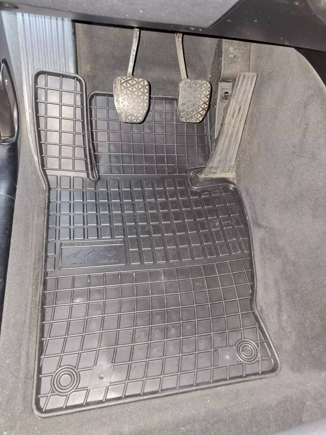 То ж вирішив шукати далі, але нічого не підверталось цікавого. Аж потім запитав поради в х3/х4 клубі і пан DelyukinD порадив звернути увагу на килимки Frogum, мол норм якість за свою ціну. Власне їх і замовив. Дійсно гума м'якенька, якісна. На диво ніякого запаху. Лекало чудово лягає в ніши. Вони не мають кріплень, але тильна поверхня покрита зацепами, то ж вони нормально тримаються і не йорзають під ногами. Єдине частина, яка мала б накривати площадку під ліву ногу, не ідельно лежить і інколи трохи зміщується до педалі зчеплення. Треба щось придумати з цим.