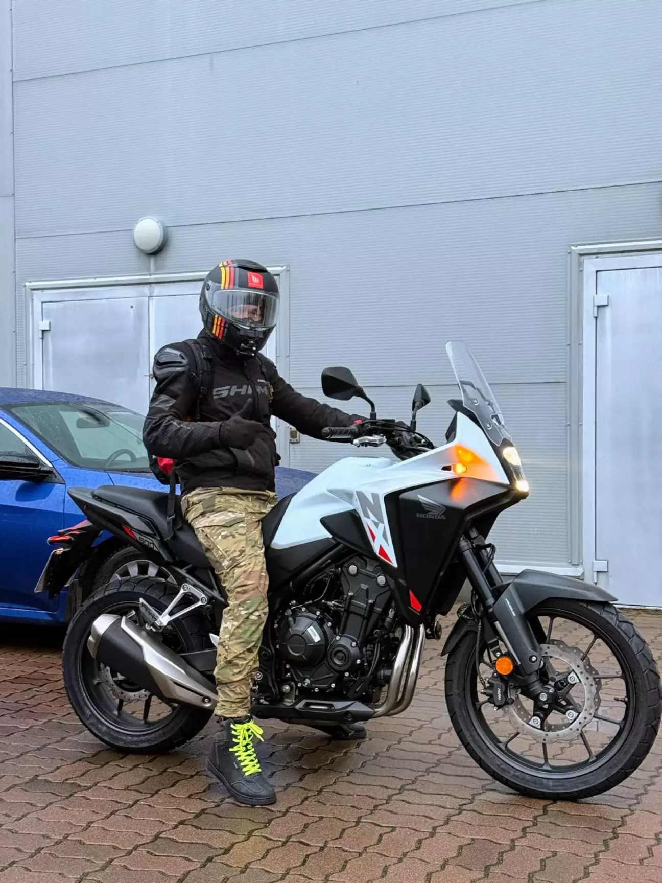 В связи с тем что решил сменить класс мотоцикла (больше нравятся дальние поездки), я продал свою Каву знакомой и пошел смотреть новый себе) Предварительно смотрел обзоры и для себя решил что хочу Хонду. Выбирал между NC750X и NX500. Потому поехал в салон смотреть какой в живую больше зайдет. То что мотоцикл буду брать новый - решил изначально для себя, не хочу после кого-то и планирую ездить долго на нем. В живую пощупал сначала NX500 - он мне сразу понравился, через час я вспомнил что еще NC750X смотрел, в зале него не было но мне дали доступ на ремзону где стояла такая же на ТО1 (1000км). Я посидел - не понравилось что она сильно широкая и низкая. Учитывая эти 2 фактора - он мне не подходил уже. Вернулся назад на NX, ще посидел и пощупал и решил брать) Официально осталось в наличии их 5шт (4 красных и 1 белый что я и щупал). Черные есть еще, но под заказ (я понял для себя что черные ну нафиг брать, греется на солнце капец летом). Решил брать белый, в живую он еще красивее чем на фото). Также к покупке сейчас подтолкнуло то, что на следующий год завод поднимает цены+логистика в евро оплачивается, и с ростом курса - поднимется и цена мота в целом. Решено брать) Оговорили все, оплатил на следующий день - через 3 дня поставили его уже на учет и спустя неделю после осмотра - приехал забирать (мог раньше забрать - но не было времени). Первый запуск, запах этот нового..)) первая заправка - сотка километров.. кайф) погода не кайф была, но меня было уже не остановить 😀 Но ощущение прям крутые, посадка - как на джипе едешь, все комфортно и понятно. Также классная панель приборов, а звук выхлопа - прям вообще бомба)