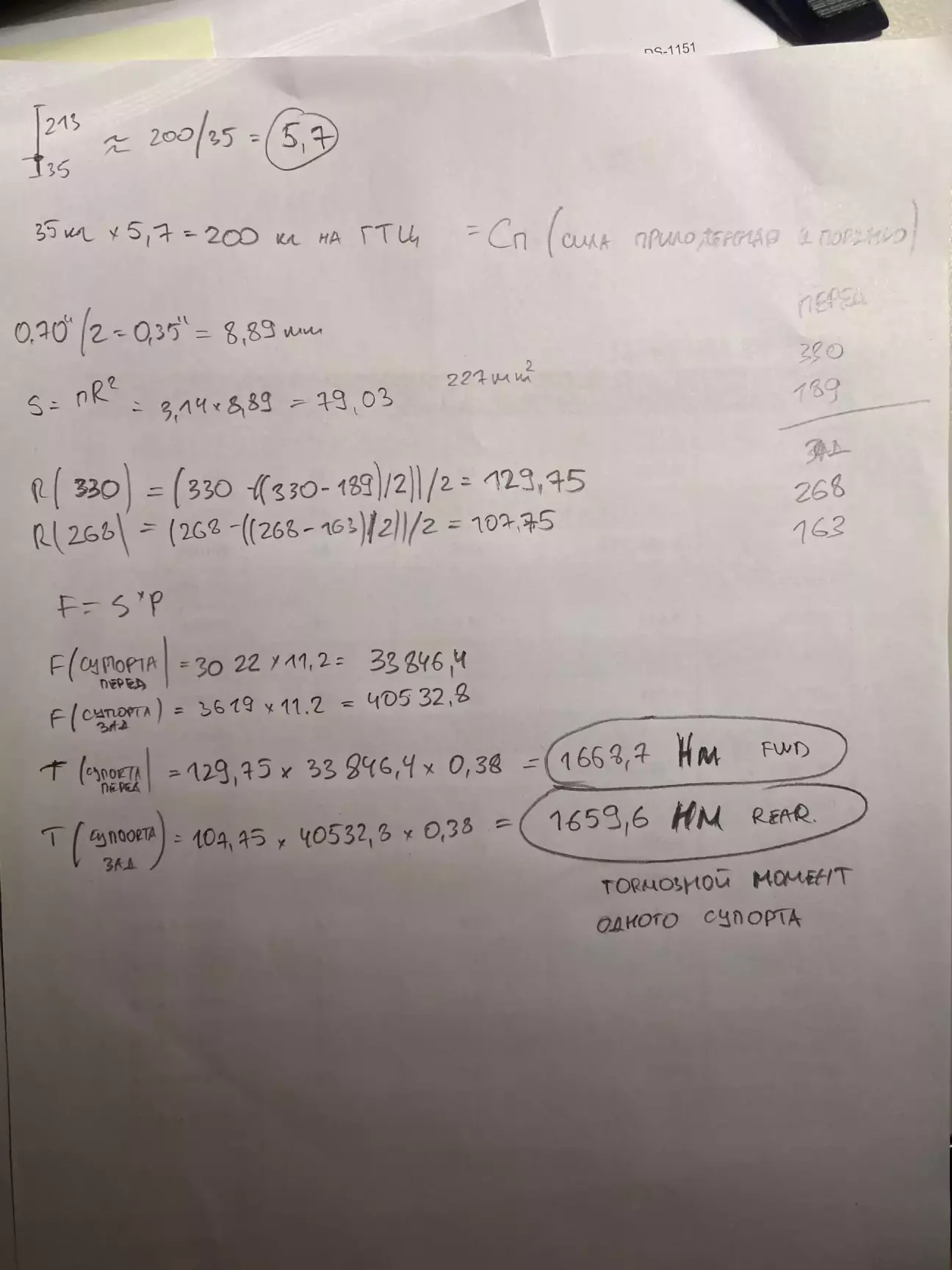 Витративши 3 вечори після роботи на пошук необхідної інформації та формул зробив розрахунки всього, що стосується гальмівної системи на моєму авто і що я Вам скажу, що передні 4-х поршневі супорта по гальмівному моменту не дуже обігнали 2-х поршневі задні😳