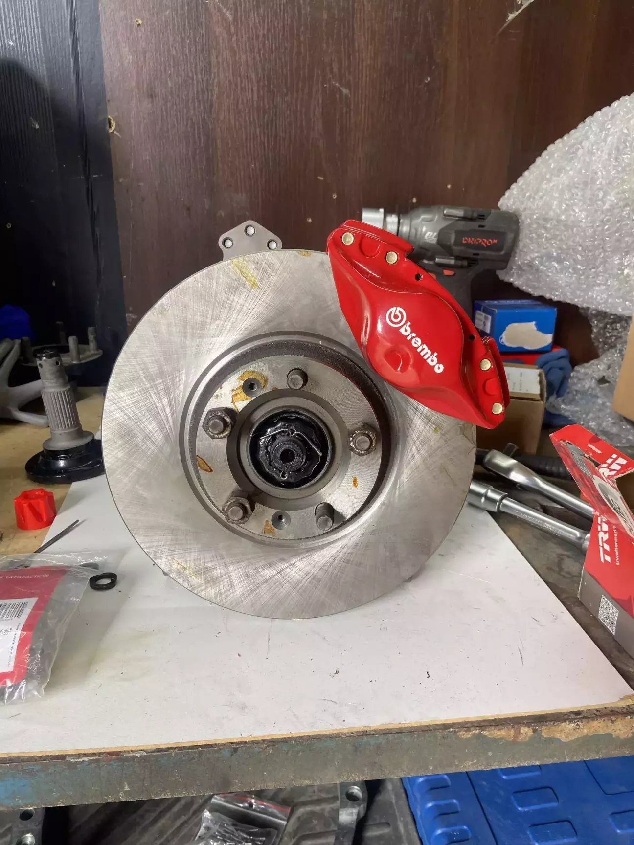 Почавши спілкуватися з ним, він сказав, що це було типу спецзамовлення, та насправді більше дорогі понти, з чим я не міг не погодитися, тому що ставити такі «машинки» назад та на ті маси авто, не раціонально. Ну посудіть самі, яке навантаження на задні гальма ми маємо і нафіга нам така ефективність гальм на задню вісь, якщо регулятором гальмівних зусиль, ми її всеодно придушимо щоб зад не перегальмовував. Плюс сама вартість супортів та колодок до них, ну короче, це просто понти і гарна картинка не більше.