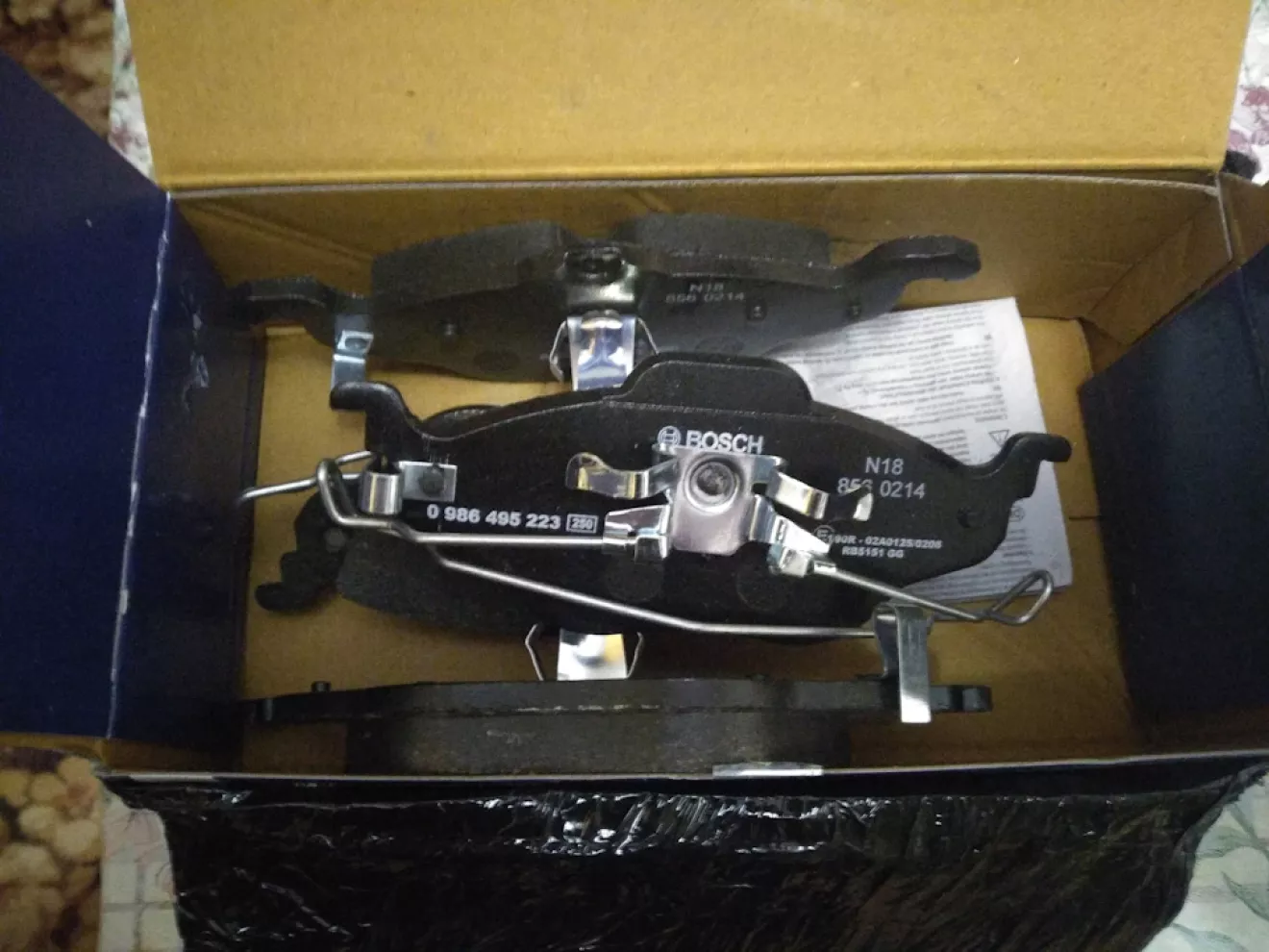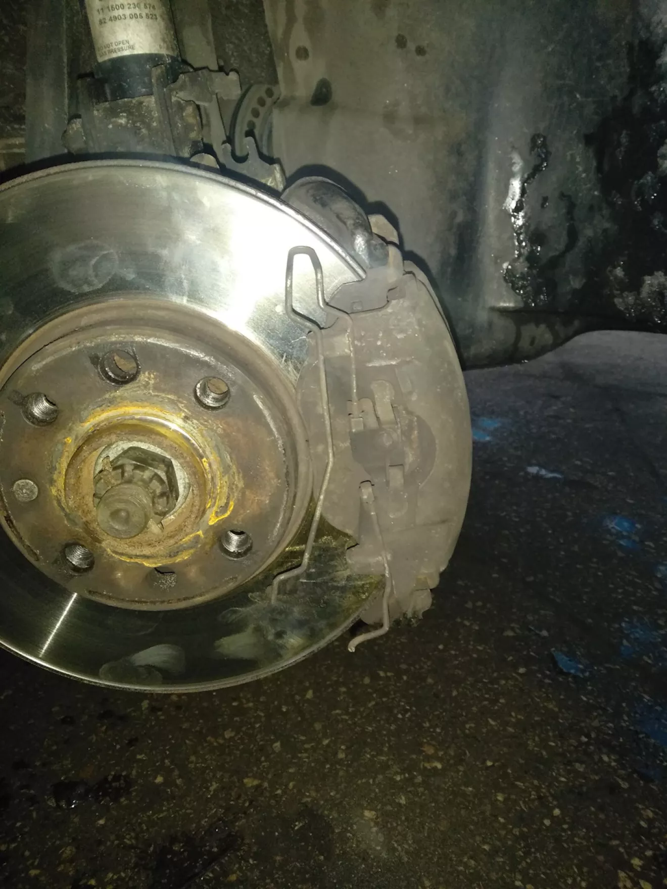 Заменил колодки по причине лопнувшей прижимной скобы(прошли около 15000км) ☹️ сам процесс замены не фотографировал так как в гараже холодно и было не до фото🤪