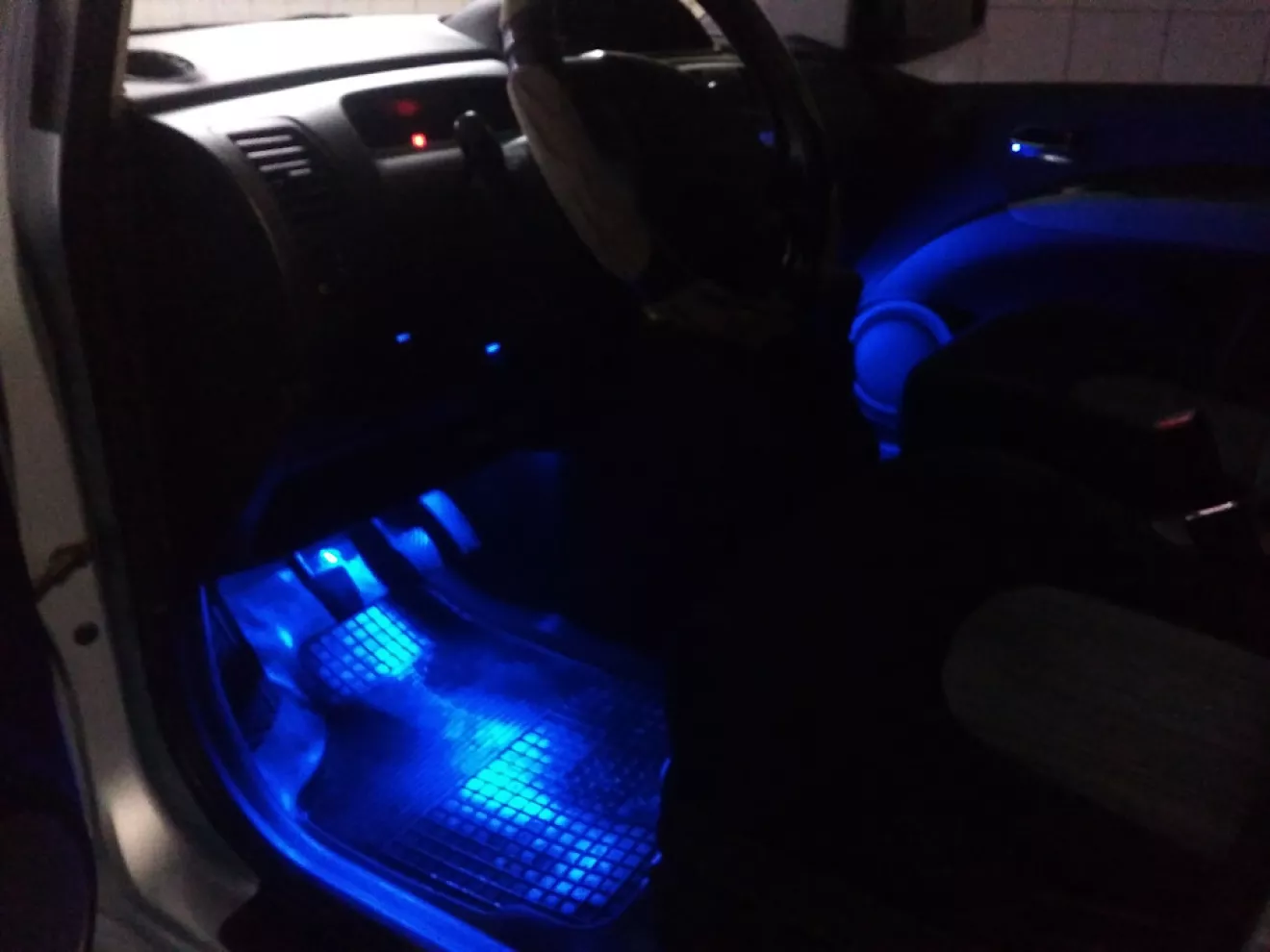 Как и во многих моделях в Матриксе конструкторы не посчитали необходимым сделать ну хоть какую-то подсветку для ног, поэтому в вечернее и ночное время под ногами водителя и переднего пассажира ну ничего не разглядеть при посадке или высадке, так как основной плафон расположен почти над задними сидениями, а включать каждый раз передний точечный плафон просто лень.Короче сделал все как и у предыдущей моей Фиесте.Подключение через плафон, ну и заодно багажнику перепало.