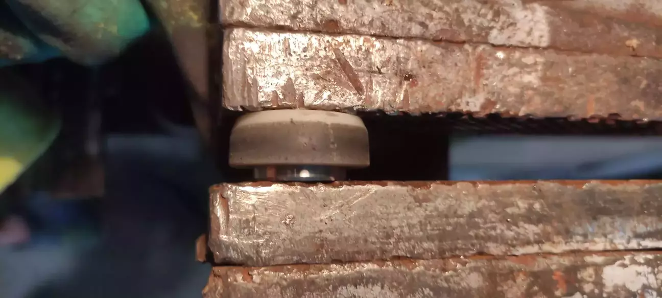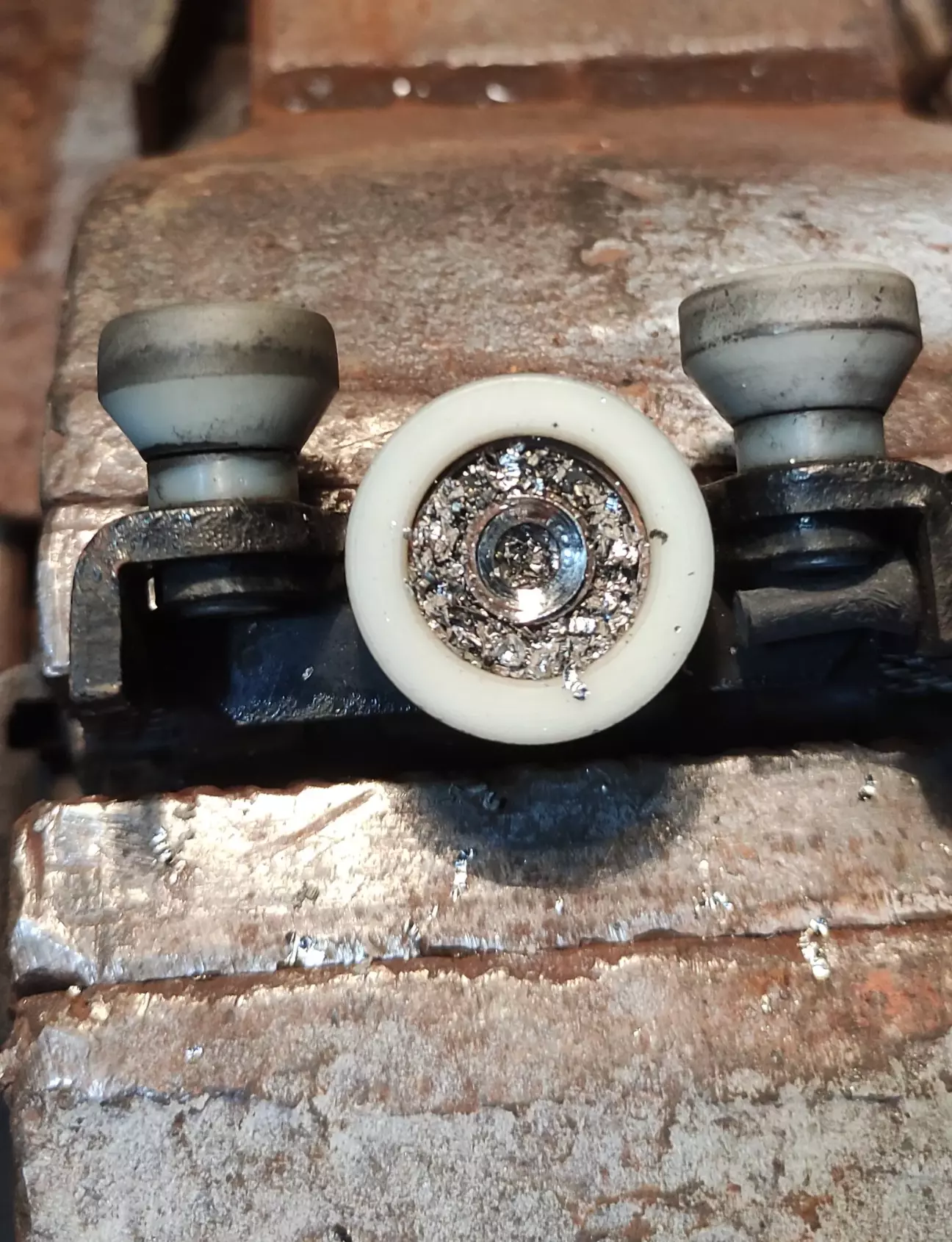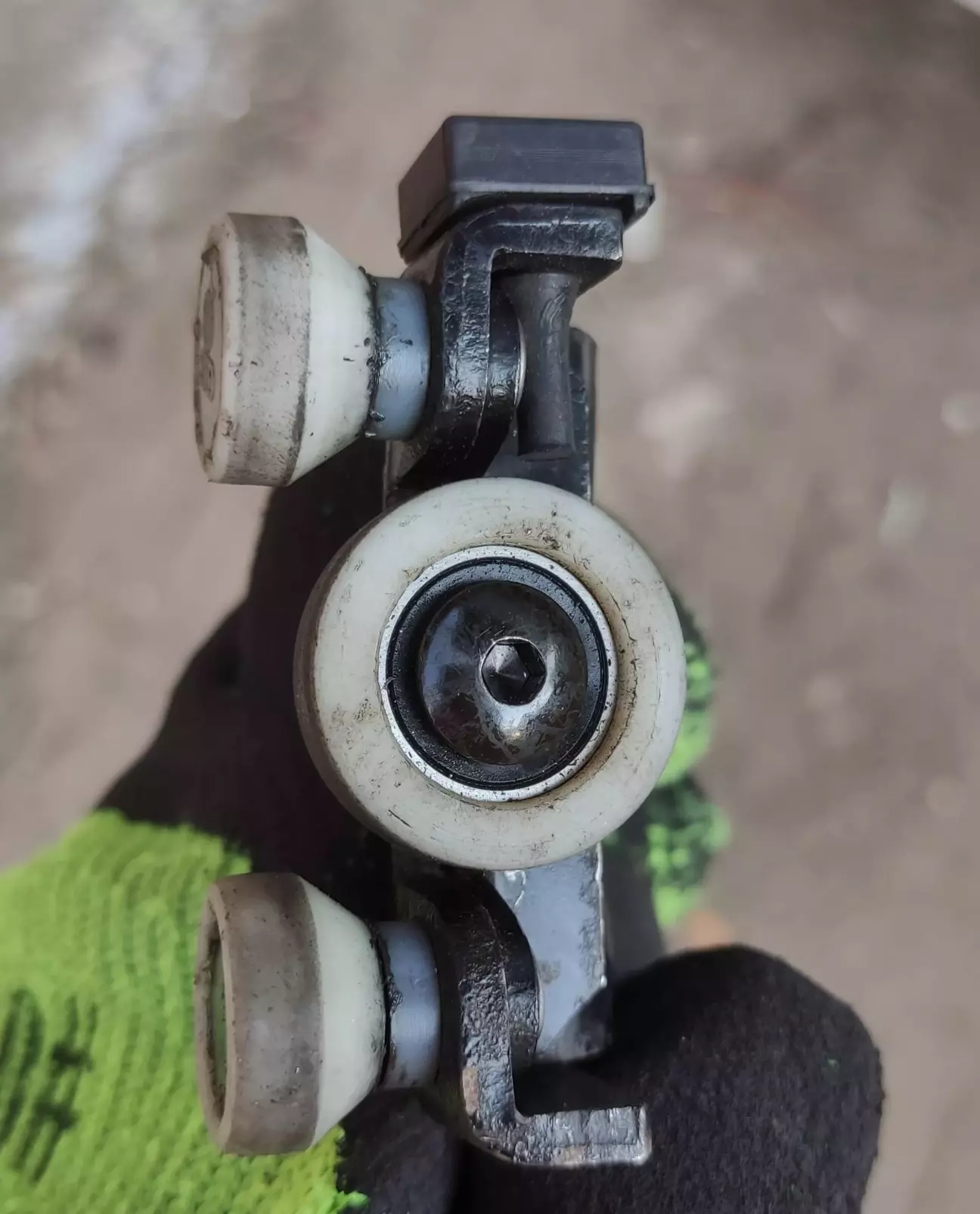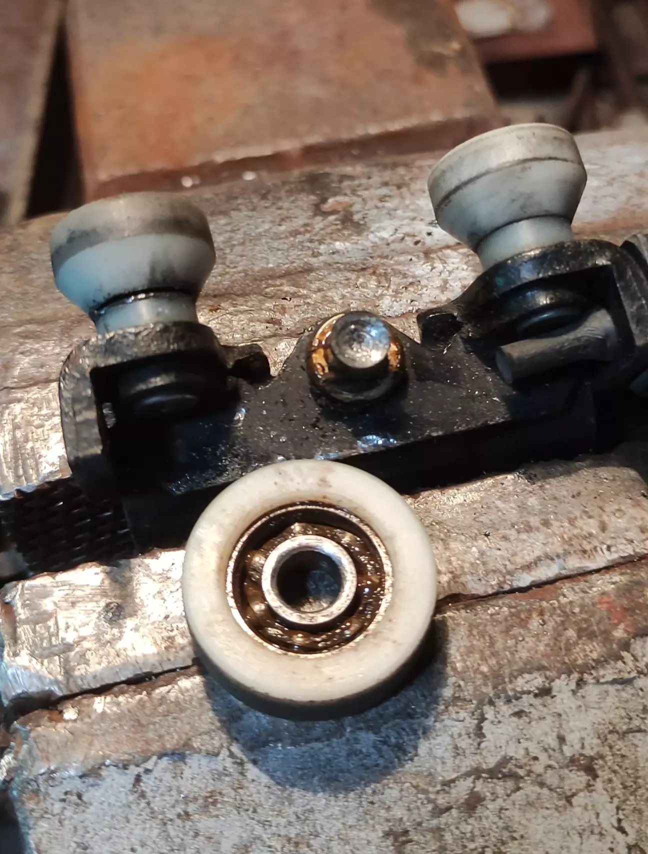 Нарізавши різьбу М5 у токаря (зламав мітчик, тому довелося звертатися до професіоналів), закручуємо болт. Такі знайшлися від роликових ковзанів.