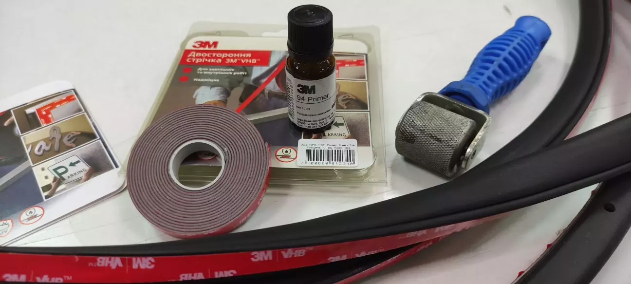 Вже погодився на нові, і навіть купив, але один надіслали не "під поклейку", а вставний, а другий хоч і був правильний, але продавець відразу попередив, що він не клеїтися, тобто поганий двосторонній скотч, і на нього треба ще ліпити новий. Тут я подумав, і вирішив для чого платити за сам ущільнювач + новий скотч, якщо мої гумки цілі і плюс той самий скотч на них і буде гуд. Поганий новий ущільнювач Autotechtile успішно повернув і почав вивчати лінійку двосторонніх скотчів 3М. Вибрав 3М VHB GPH-110GF шириною 9мм, щоб з перекриттям (рідний 8мм) довжина 5м на одні двері. Старий скотч постарався зрізати під однаковий рівень. Потім знежирив та наніс Праймер 94 від 3М. Хоч скотч і дуже сильний вирішив перестрахуватись праймером. Однієї пляшечки в 10мл вистачило на 2 гумки і залишилося на дні. Але під рукою нічого не виявилося чим наносити, тому мазав прямо з пляшечки, і відповідно неекономно вийшло. 5 хвилин вичікуємо і клеїмо скотч. Після нанесення сильно розкатав валиком. Вийшло чудово, і дешево, всього 261грн.
