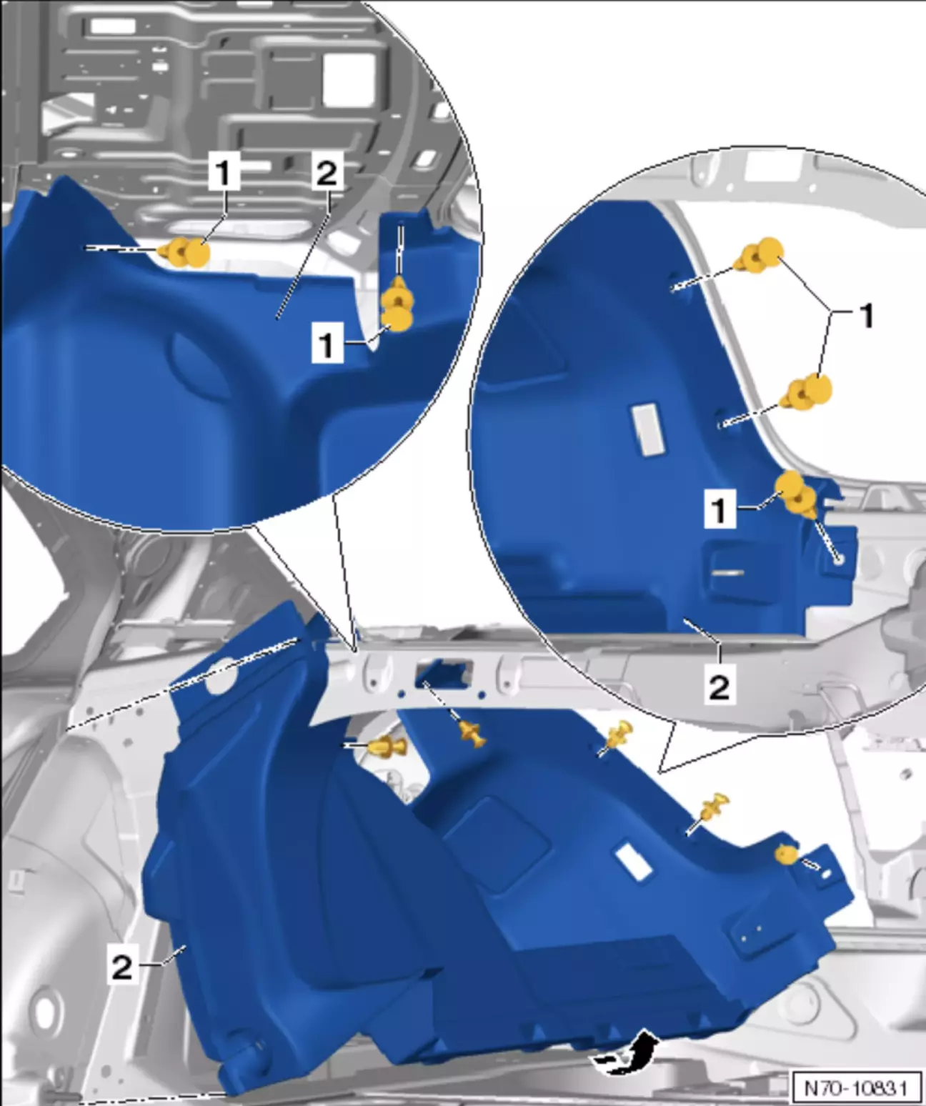 7. Знімаємо пластик де знаходиться ручка відкриття капоту, знімаємо накладку лівого порогу, знімаємо подушку заднього дивану і знімаємо обшивку багажника (як зняти обшивку описано вище)