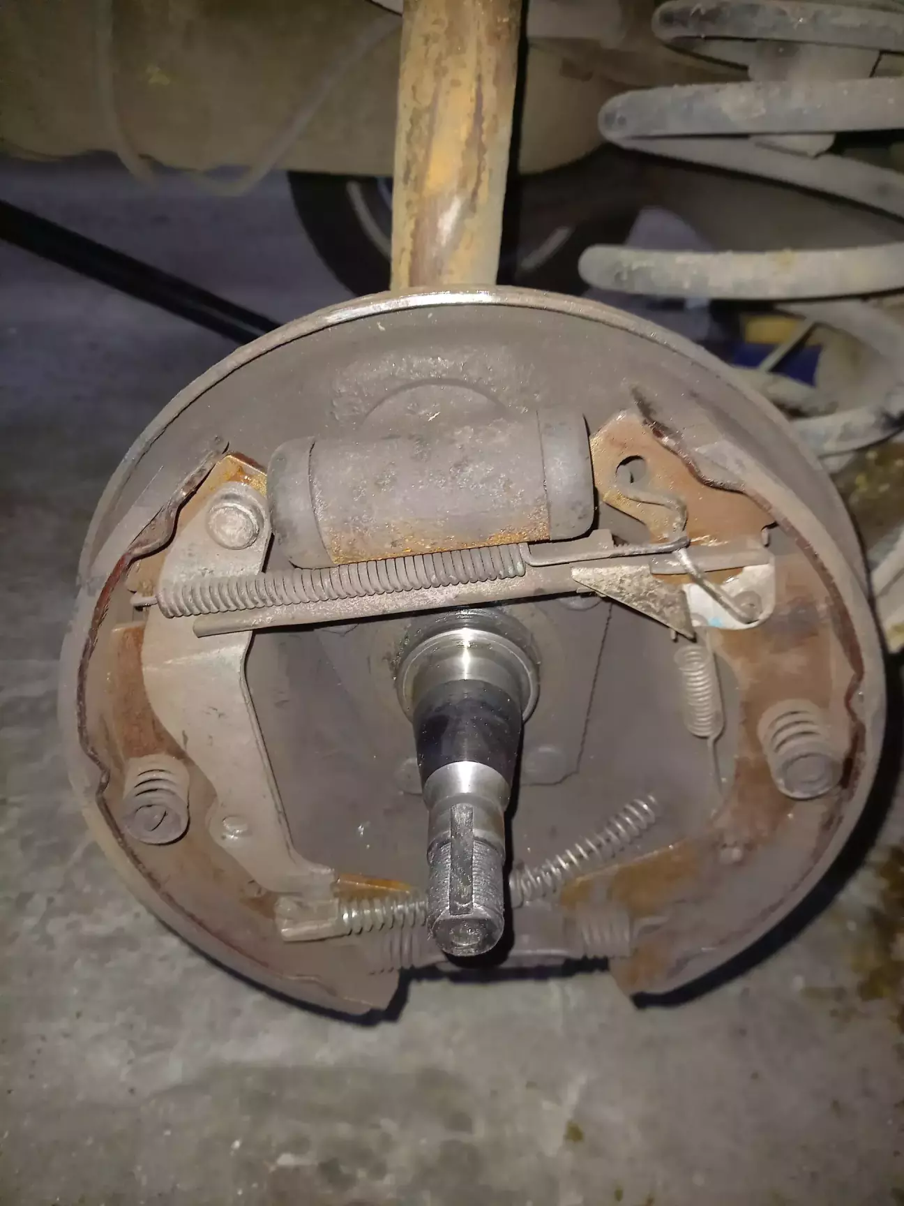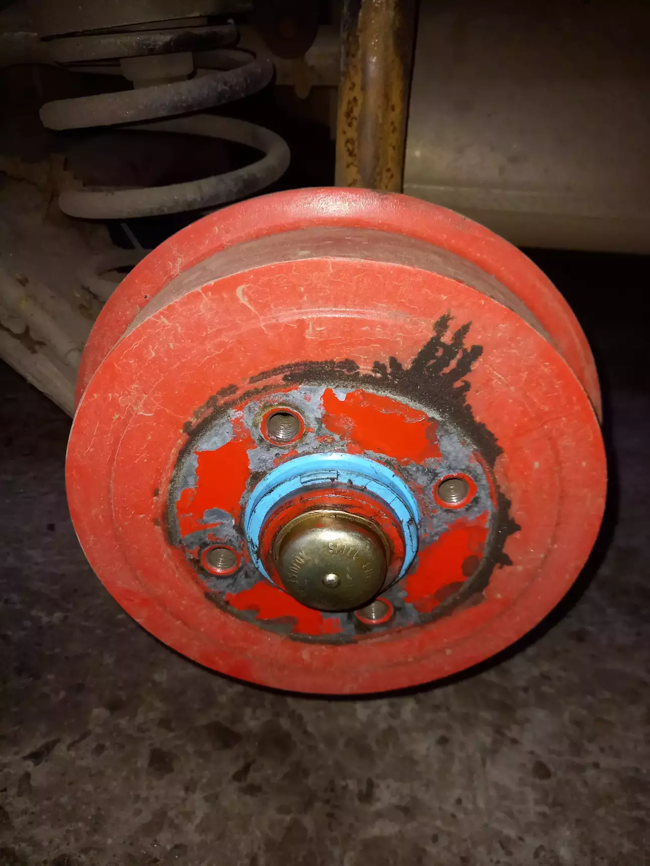 Із задніми барабанами та ж процедура. Щоправда, замінив шплінти гайок маточини та один захисний ковпачок (старий був прим'ятий та кидав змазку назовні), оновив литол на маточині та підшипниках. Ковпачок та шплінти - GM, коштують зовсім небагато. Сальники ще живі були, хоча теж були підозри щодо них.