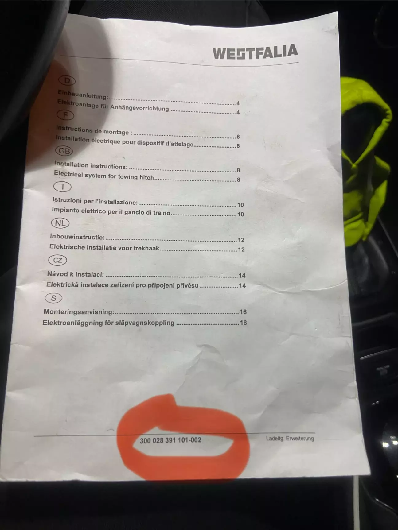 Потім прийшов час цікавого це оригінальна проводка від компанії westfalia номер проводки на фото, одразу стражу що це мінімальний набір проводки типу для причепу це ок, але для кемпера і ще чогось не достатньо, завдяки цій проводці будуть працювати стопи повороти але заряд акумулятора в Кемпері на 9, 10 піні відбувається не буде до цієї проводки необхідно докупити ще частину. Я заморозився і все зробив, щоб плюс був і постійний і після увімкненого запалення. Усі розʼєми підходять до нашого авто нічого пилити не потрібно, тільки два плюса заводимо під капот. один живлення блока і він же плюс після запалення, а другий плюс постійний.