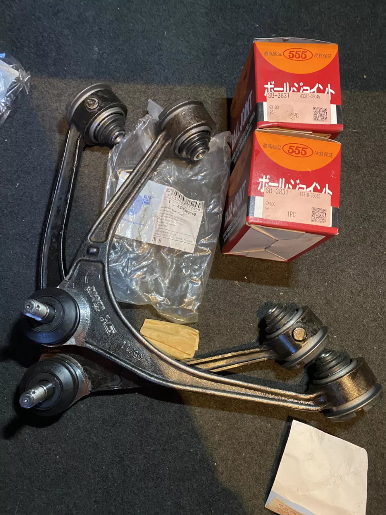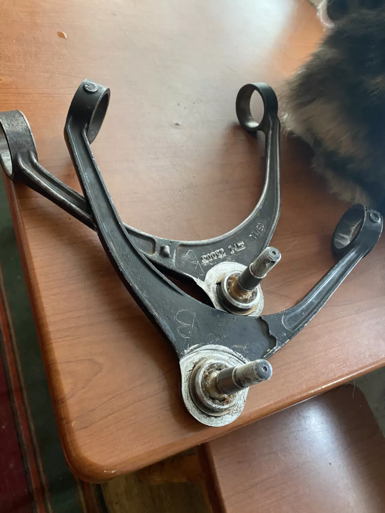 Пришли в негодность мои верхние рычаги, при мониторинге цен на оригинал немного прозрел от их стоимости. Решил переделать рычаги и сделать их со сменной шаровой. Отдал токарю старые рычаги и новые шаровые(вроде как от марка). Он мне все сделал
