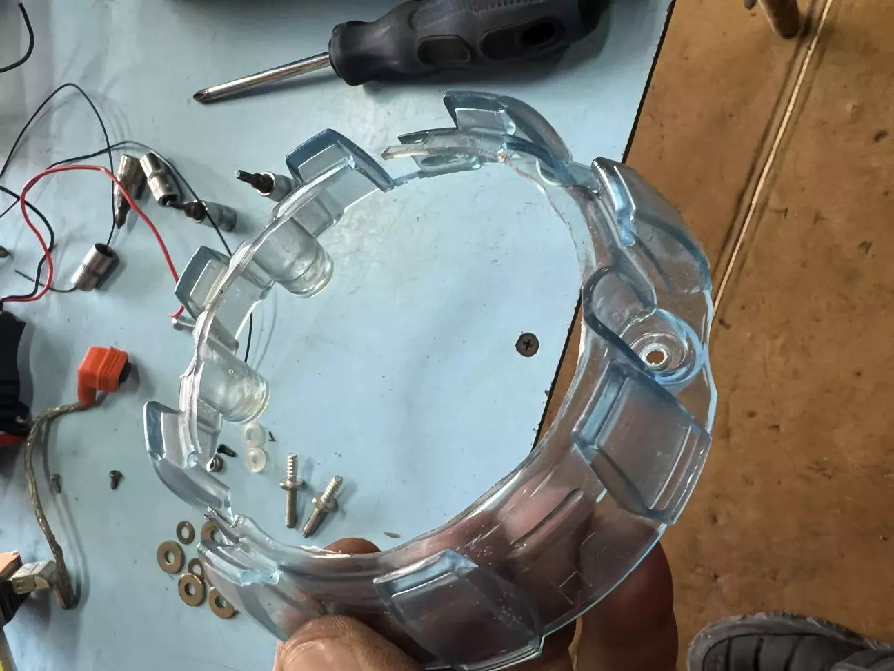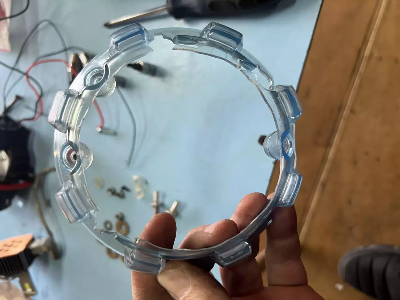 У мене вийшло якось так. Відрізав, відшліфував, свердлив і таке інше. Після підгону лінзи встановлюємо в рамку.