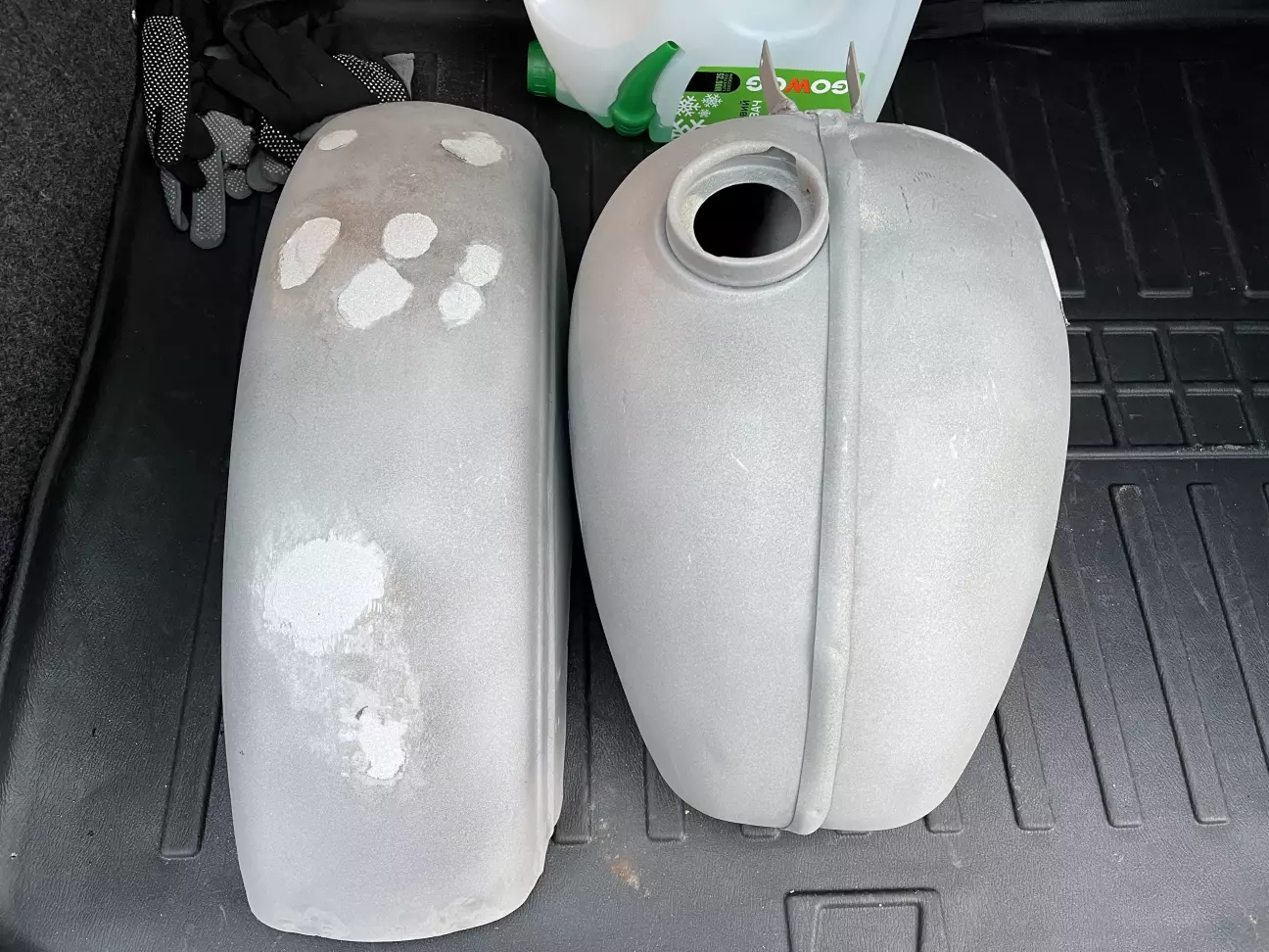 Після покриття Оловом, деталі зберігались в гаражі, та трохи пустили іржу.