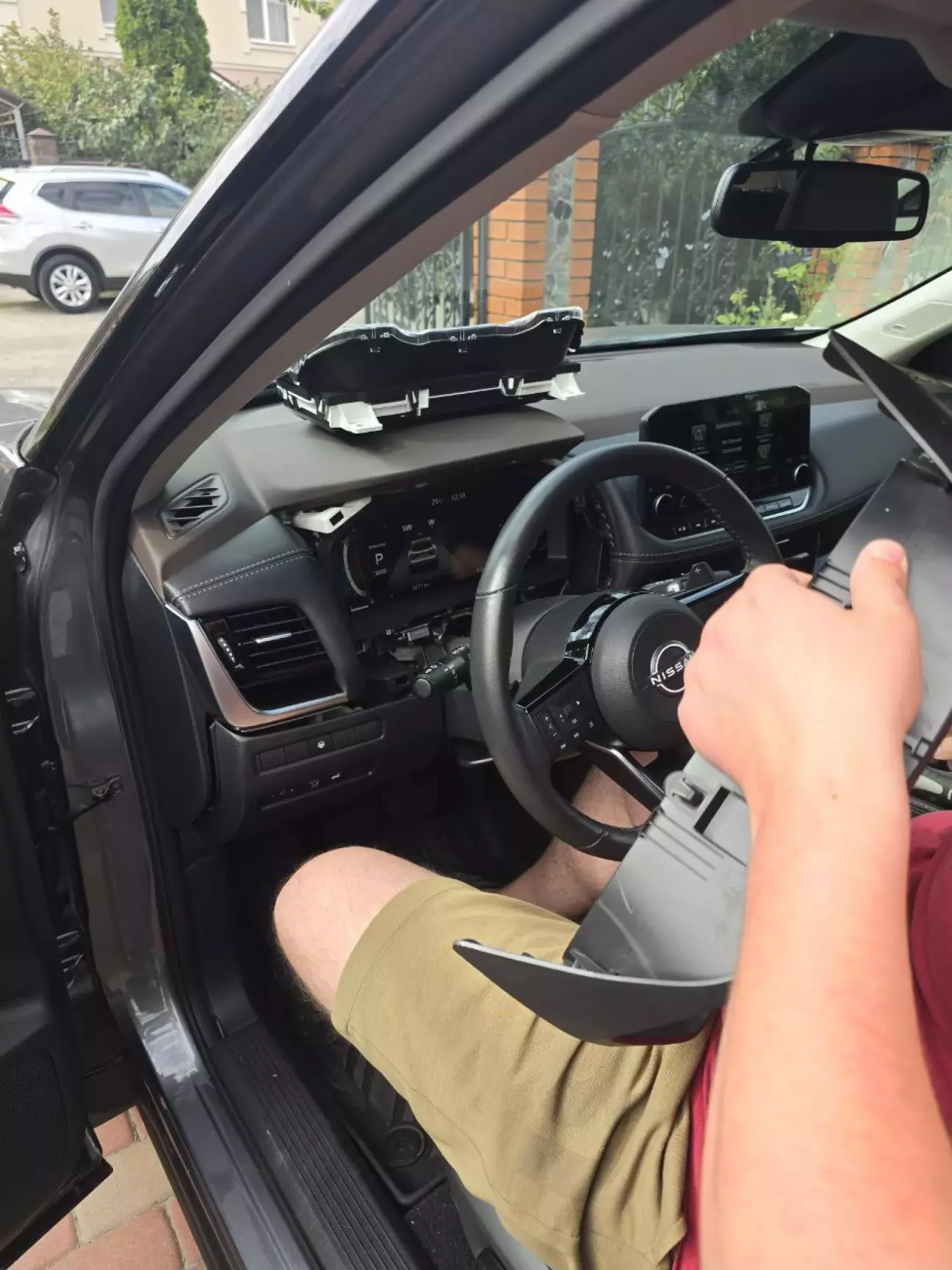 Всім доброго! Коли вибирав авто то звісно дивився максимальну комплектацію Platinum і дуже сподобалась цифрова приборка, чого в моєму варіанті SL 2023 року не було. Тут в базі приборка простіша, та ще і з подвійною шкалою милі/кілометри що мені не подобається в американських авто, тож було бажання замінити її на цифрову. Пошуки в Україні результату на той час не дали, дивився варіанти на Ebay - ціни від 200 до 500$ в залежності від пробігу але америкоси чомусь продають їх без рамки( та і ризик купити в неробочому стані стримував, тож відкинув думки купувати там. Потім на форумі власників T33 підсказали ще варіанти і один з них спрацював - була в наявності з Qashqai, рамку докуповував окремо на Ebay бо рідна як казав вже під цифрову приборку не підходить. Загалом бюджет вийшов в 400$ вже з адаптацією під мою модель та заливкою українською мовою.