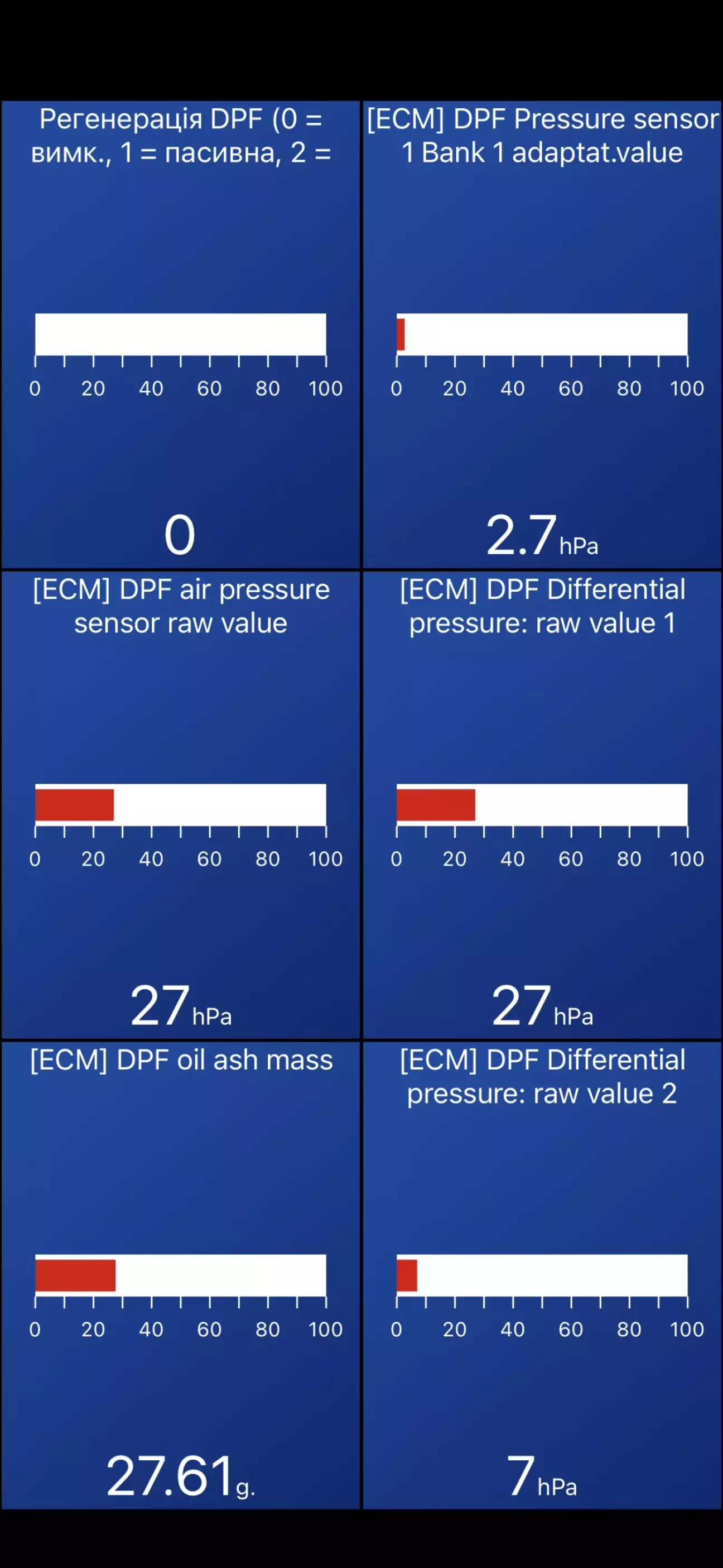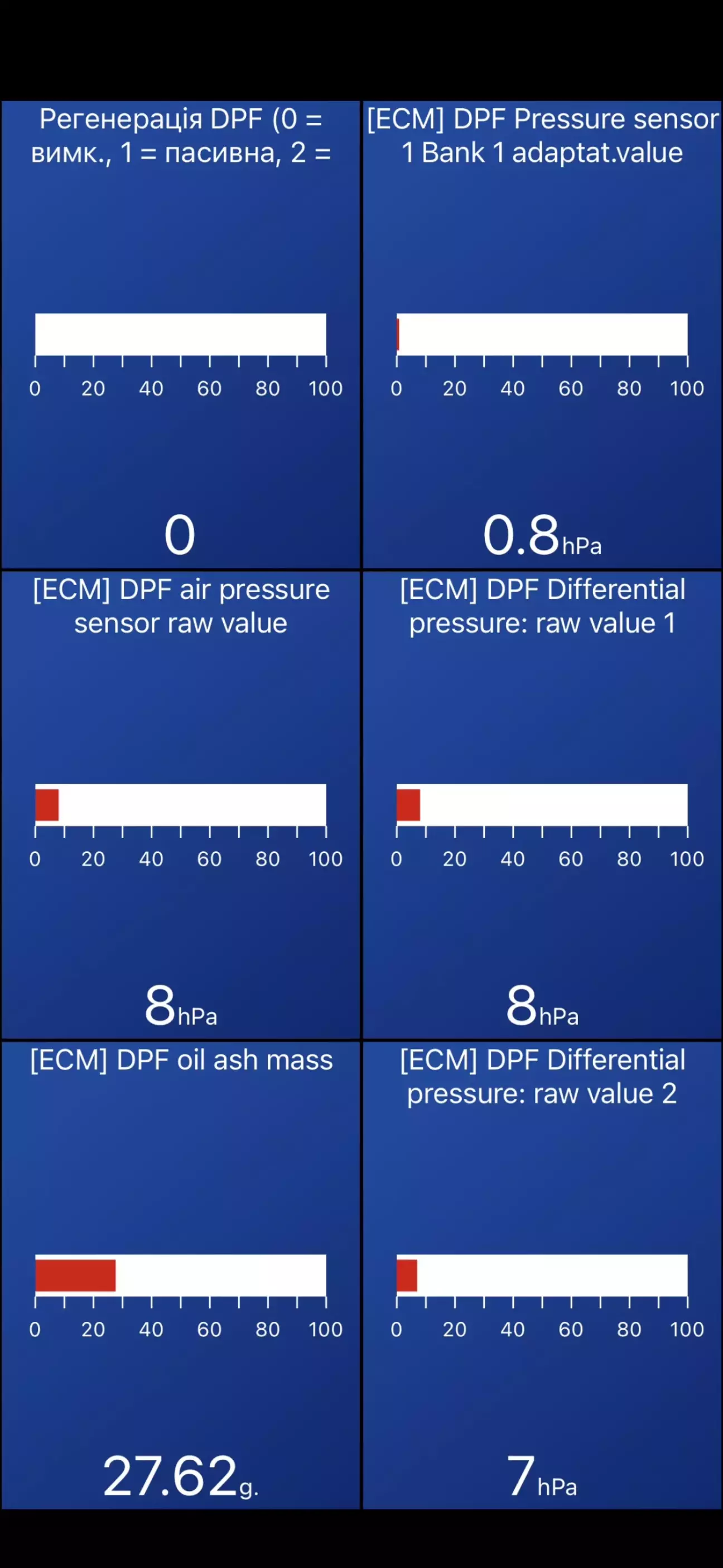 Єдине чомусь VAG DPF починає регенерацію при 80% і падає на 20% після. Може тому что адаптер WI-FI і трохи криво показує.