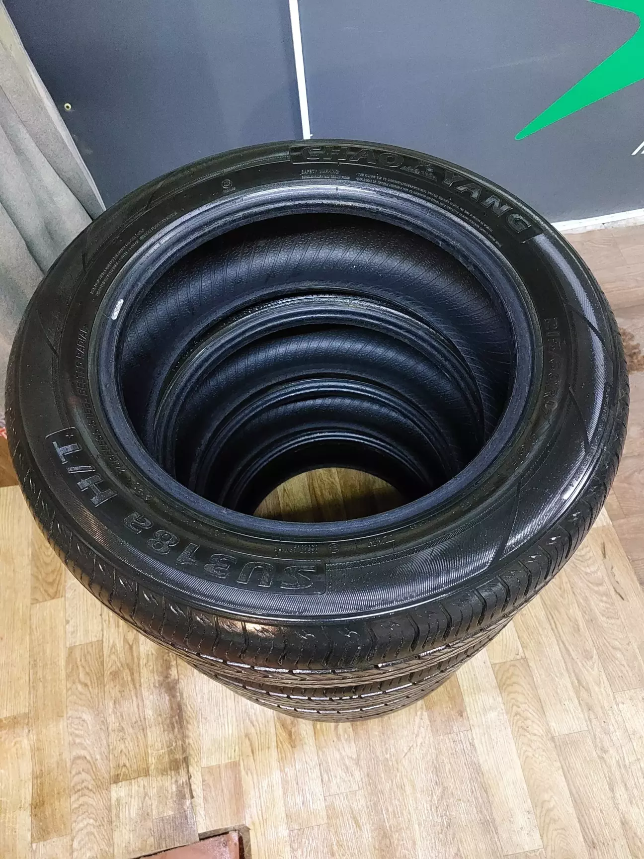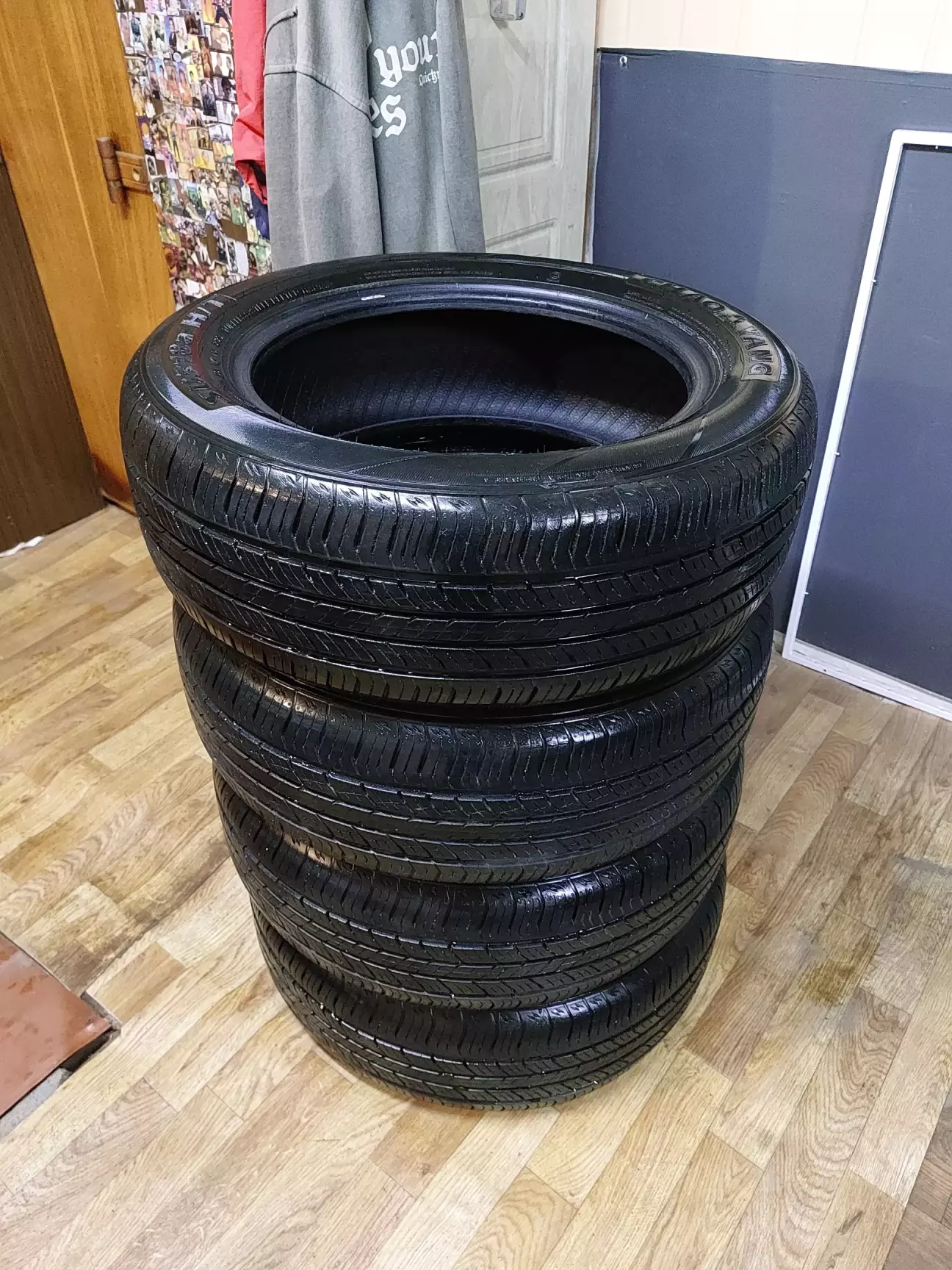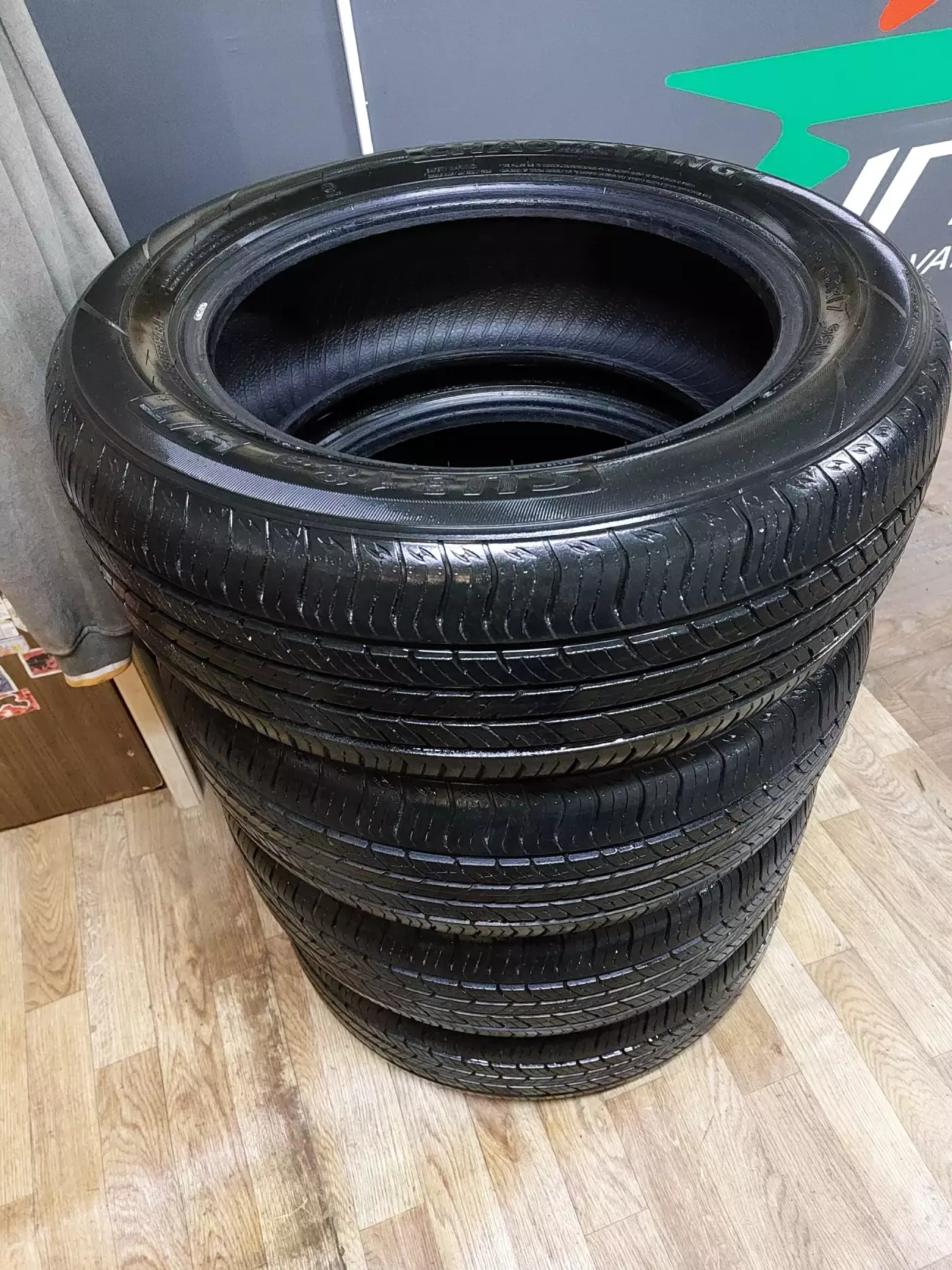 Все зробили досить швидко, я вранці приїхав і був перший. Колеса встановили як треба завдяки наліпкам. Поклав колеса до машини, відвіз в гараж і потім ввечері трошки привів їх до ладу. Прибрав камінчики з протектора, почистив, та обробив силіконом.