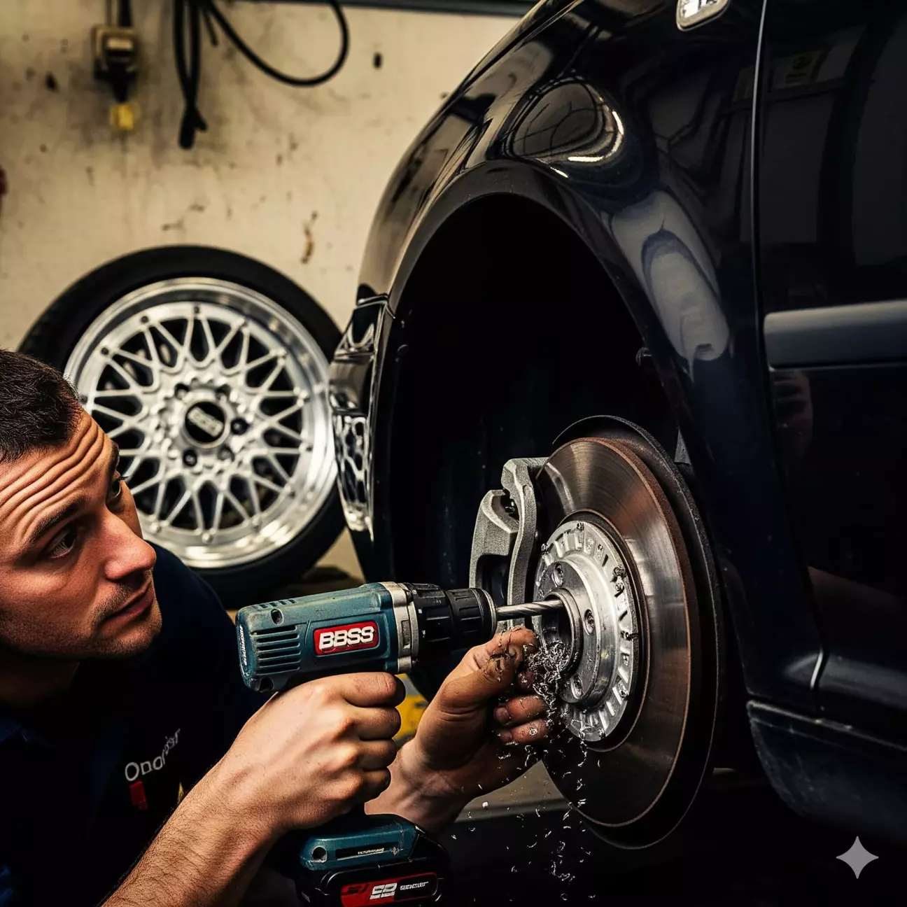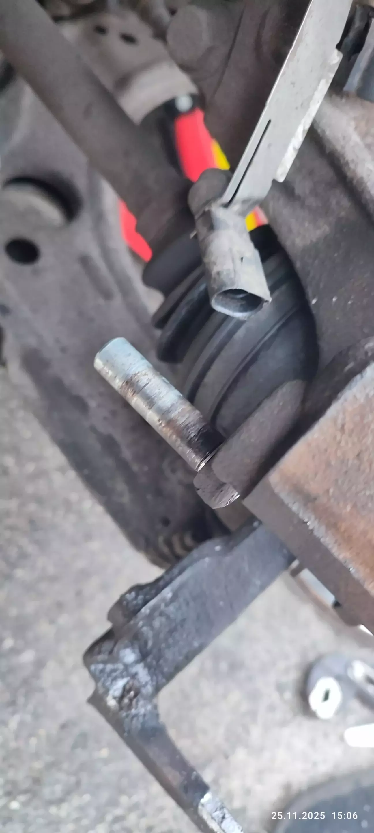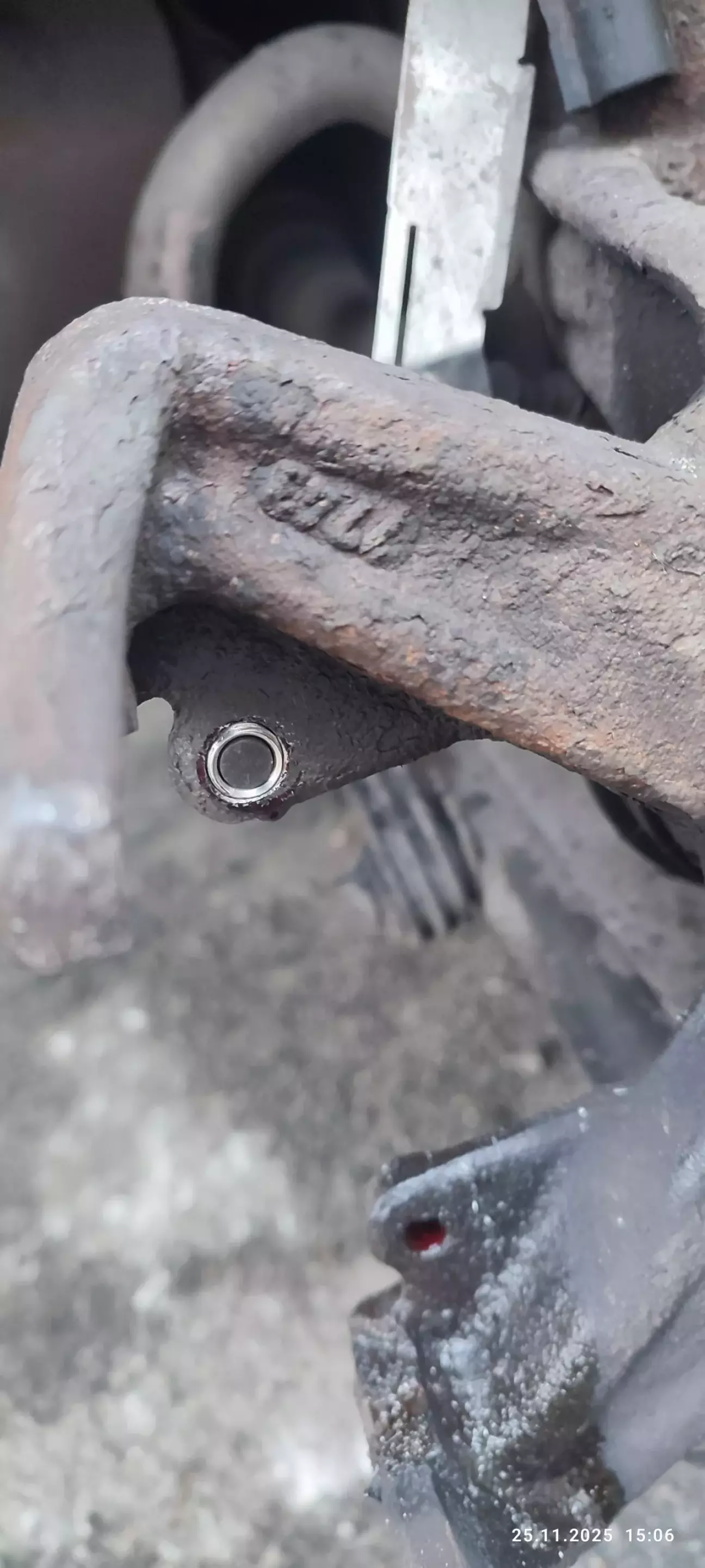 Приїхавши, зняв ліве колесо, супорт, і побачив, що відкрита частина направляйки - покрилась іржею. Як міг, вичистив іржу та почав збирати.... І коли почав закручувати верхню направляйку, зрозумів що різьба тупо покинула чат 😭. При огляді самої направляйки виявив, що залишки витків різьби тупо приржавіли до різьби направляйки. І виходу нема, тому зібрав як є, та накинув колесо, та приступив до іншої, правої сторони.