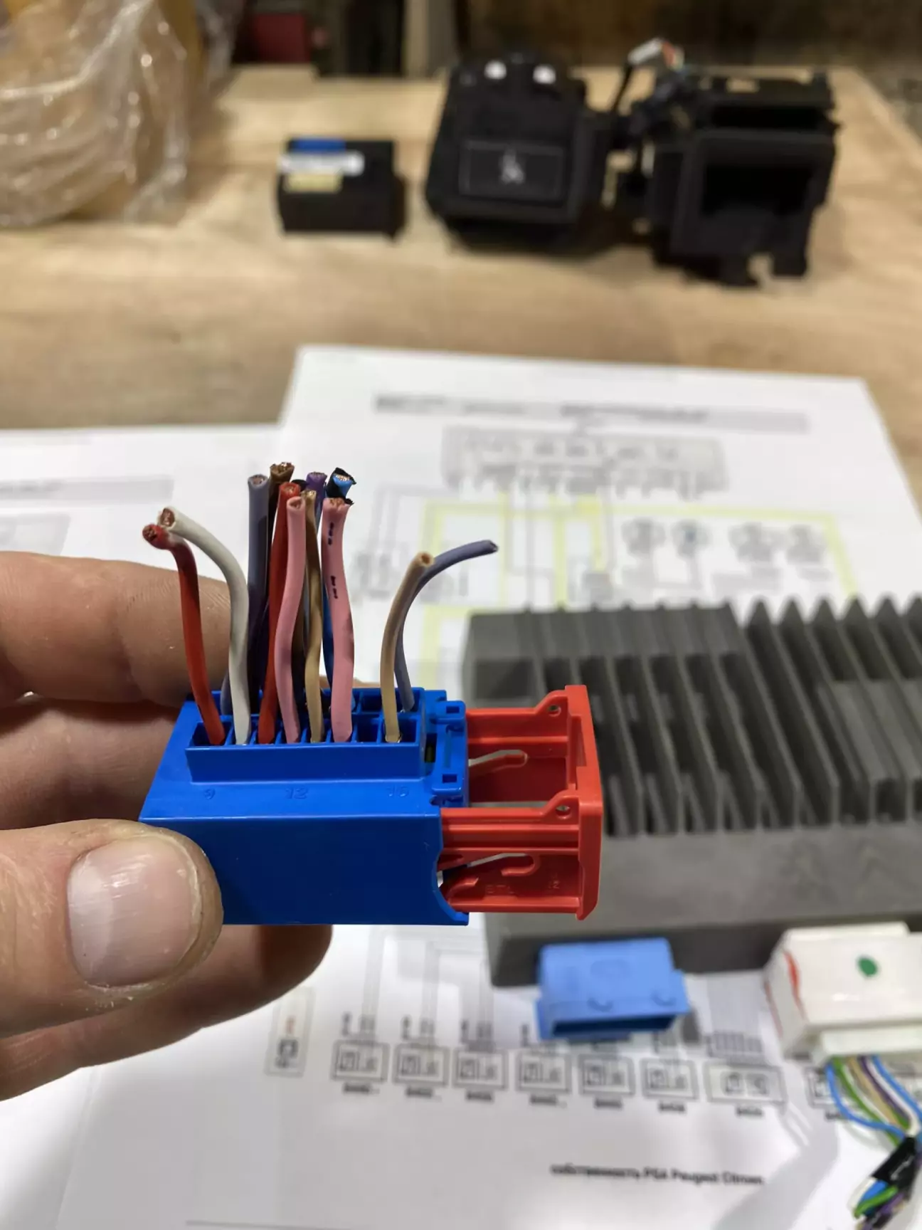 Ну а далі все по схемі підключення, перше розпіновуємо фішки і начинаємо відміряти довжини кабеля до всіх динаміків щоб зробити нову косу проводки.