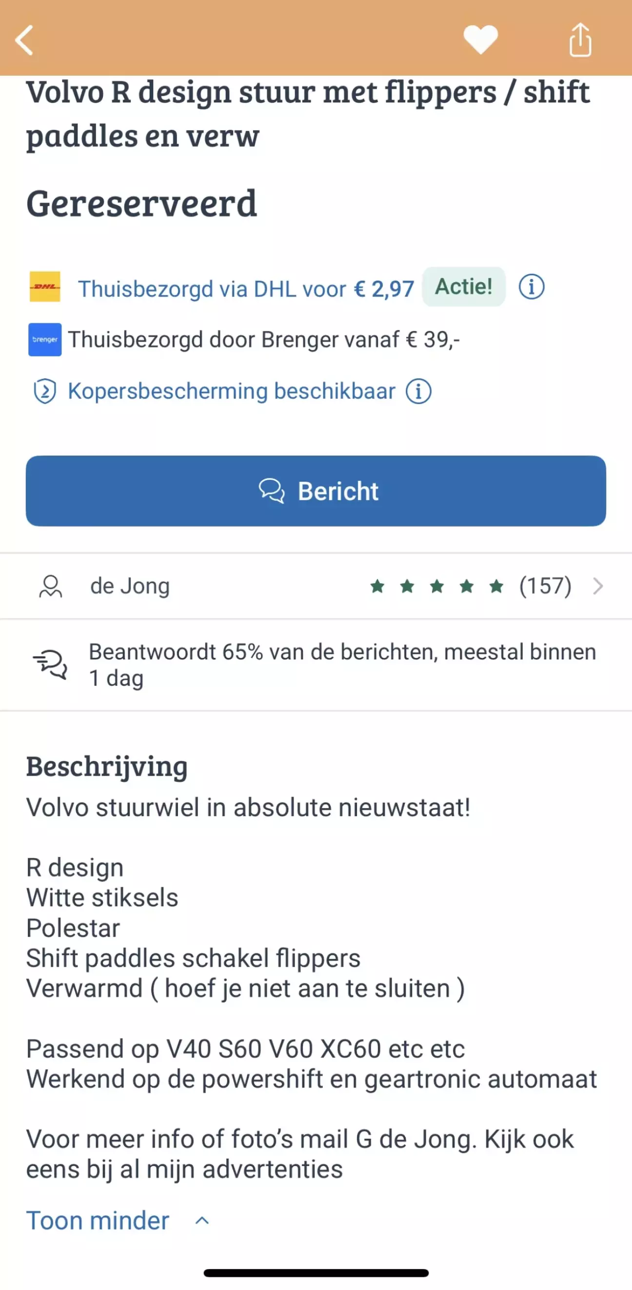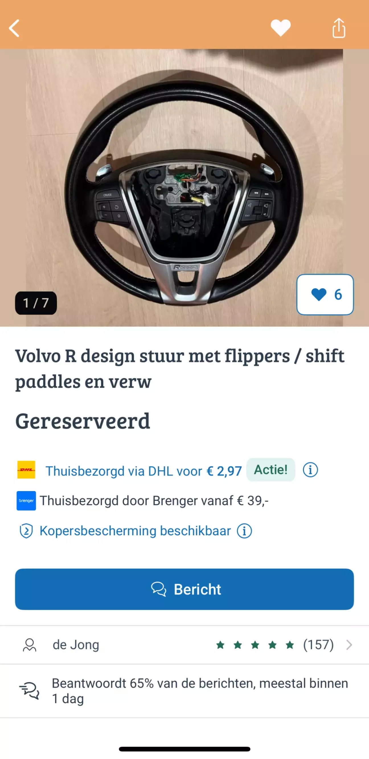 Ну тут мене і перемкнуло. Хлопці в моєму сімейному бюджеті не було закладено витрат на таке кермо, але все, пізно, я в пошуках. Бельгія - нема, Німеччина - нема, Польща - нема, Україна - нема 🤔, є в Нідерландах - R Design з під кермовими перемикачами та підігрівом, плюс в описі зазначено що шов та колір нитки Polestar (типу ок, але я розумію що це впливає лиш на вартість), колір та шов для мене не був наскільки важливим, щоб заплатити за це. Стан керма на фото шикарний, але мене кусає ціна, дуже кусає. Проте я кладу його в закладки і бачу що зацікавлених уже двоє. Дні минають, я дальше в пошуках, нема нічого від слова ЗОВСІМ 🤔🤨. В моїй голові зʼявляються ще два персонажі з протилежними думками, один каже: -«нафіг треба, при бережи гроші», інший: -«живемо один раз, ну скільки ж можна собі в усьому відмовляти?». 8-м днів я просинаюсь, живу, працюю, та засинаю із цими двома. Заходжу в застосунок а претендентів на це кермо уже 6-ть, це я в той момент 🤦♂️. Кажу дружині, а прикинь нас уже 6-ть хто зацікавився цим кермом, знаєте якою була її відповідь?, -«ну і, що ти чекаєш?». Йопти, тут ж, що виходить що вона підтримує одного із моєї голови?, виходить «ЗА» більшість?!. Пишу власнику, що я вирішив придбати це кермо, і чи не хоче він трішки знизити ціну?, на що він відповів, що -«завтра має приїхати чоловік оглянути кермо!, і ціна фіксована»…. Я в розпачі, це що фіаско?! ну ок чекаю наступного дня, та його повідомлення. Наступного дня я отримую повідомлення, що кермо може бути моїм, тому що та людина не приїхала на зустріч, і більше того не піднімає слухавки мобільного.