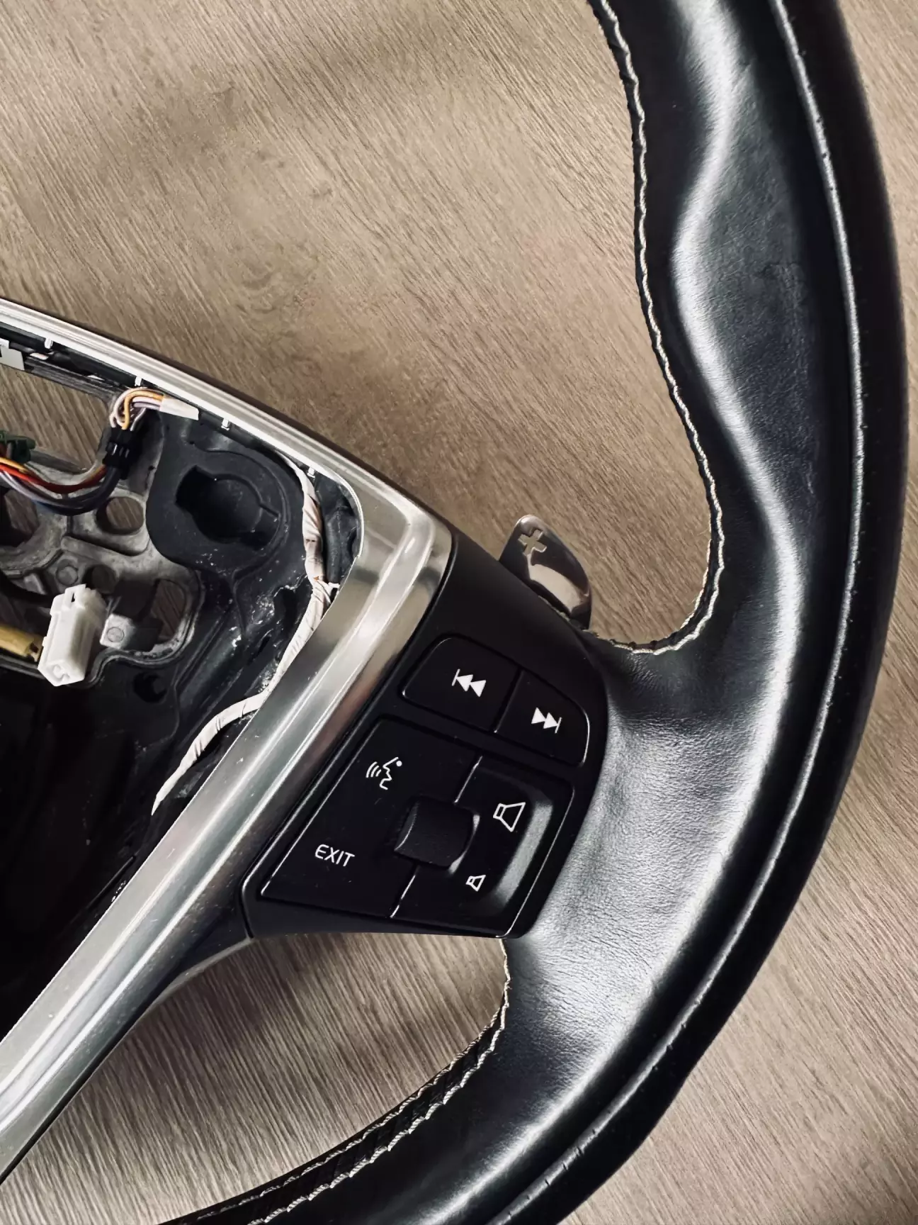 По інструкції відʼєднав мінусову клему від АКБ, та чекаємо 10 хв щоб струм вийшов із всіх блоків управління. Попили кави, продовжуємо. Подушка безпеки в наших руках. Знімаємо хромовану рамку, для того щоб був доступ зняти ліву кнопку на кермі, адже у мене адаптивний круїз контроль і там 6-ть кнопок. Як недавно переписуючись з Олексієм я запитував його про різні моменти, на що він відповів мені: -«що там все без бубнів і танців», ніяких прошивок, ніяких доопрацюваннь.