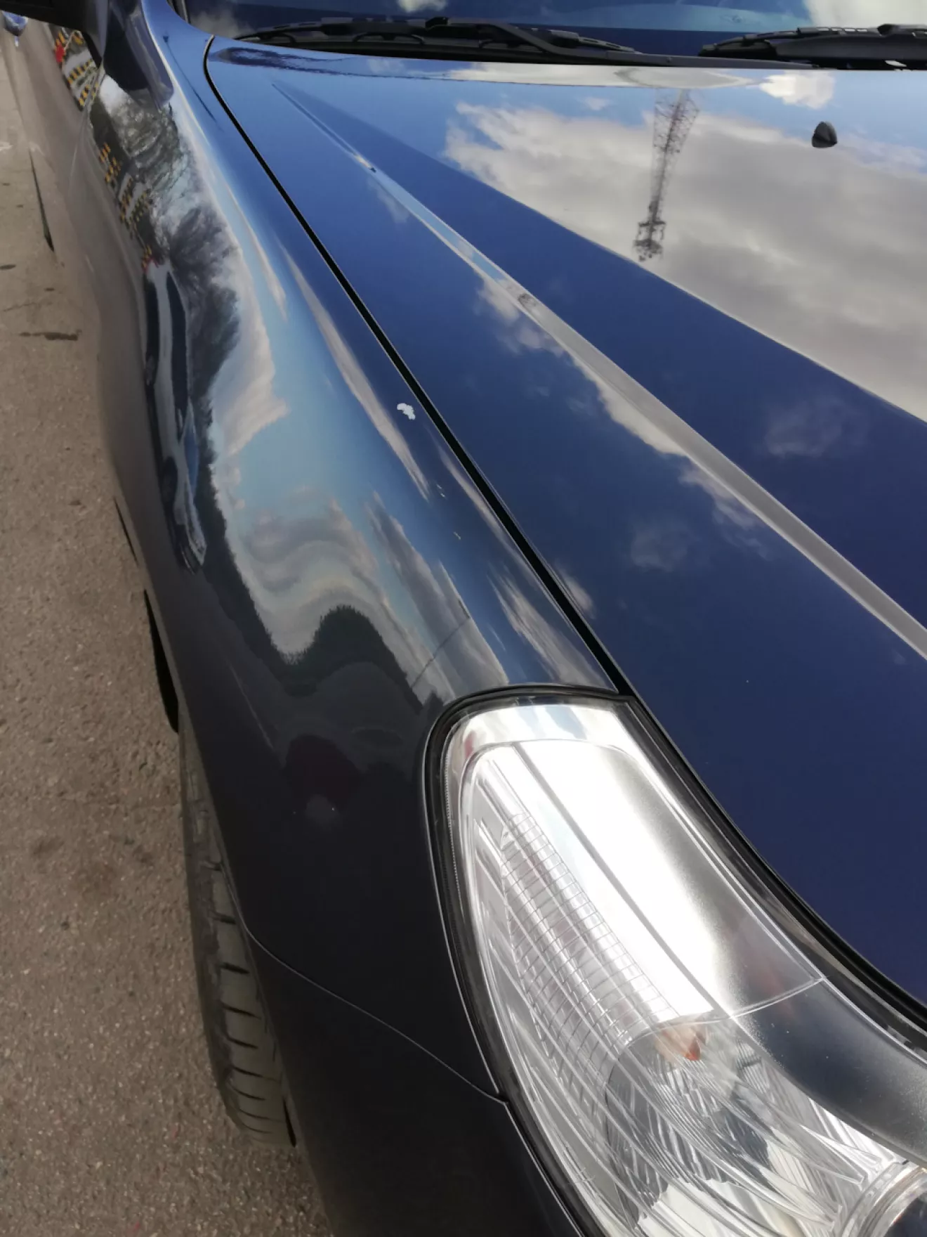 Купив фарбу на підбір, придбав аерограф, ґрунт і лак. Було шкода перефарбовувати все крило через такий скол, тож вирішив заморочитися сам. Звісно, результат не «як із заводу». Але краще, ніж голий скол)