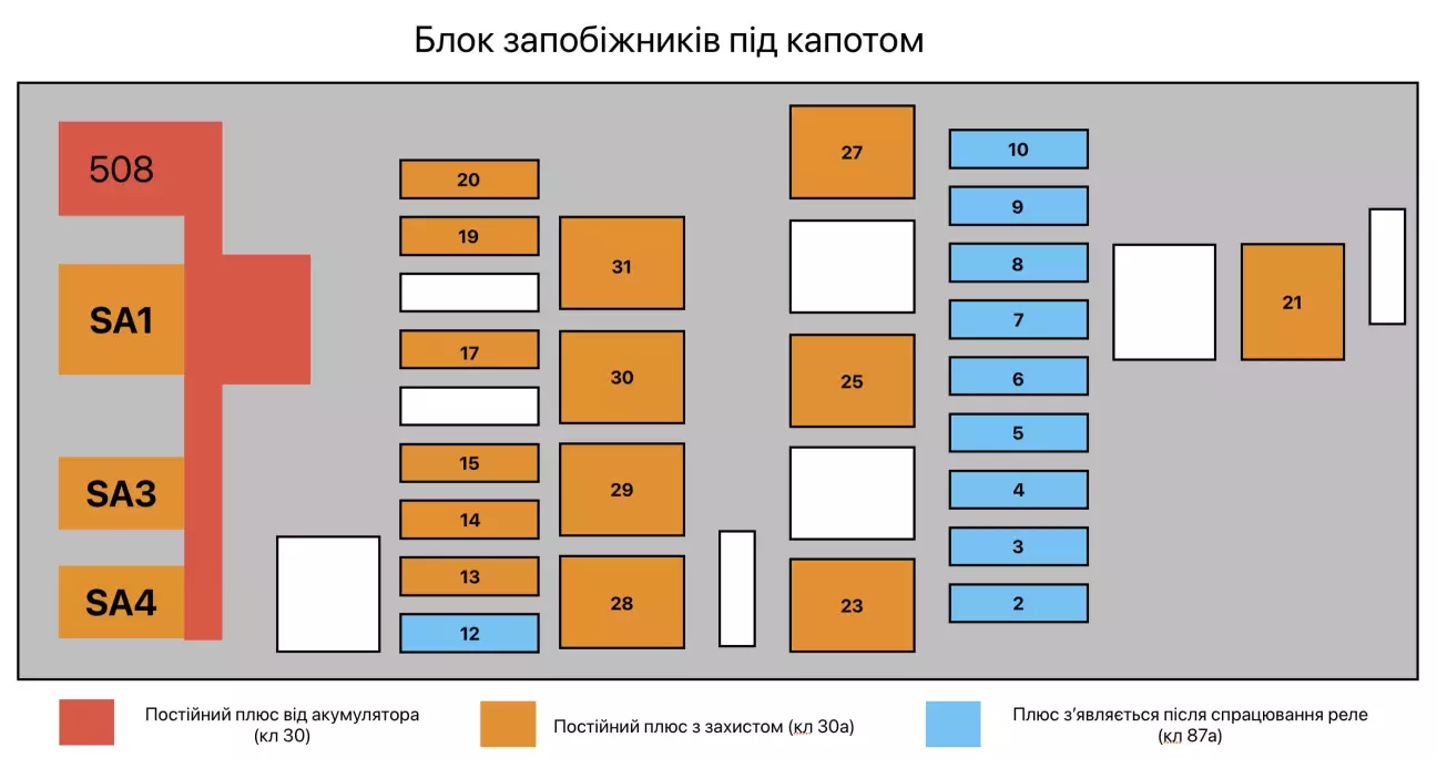 18 - (10А) Передня камера допоміжних систем, реле клеми 15