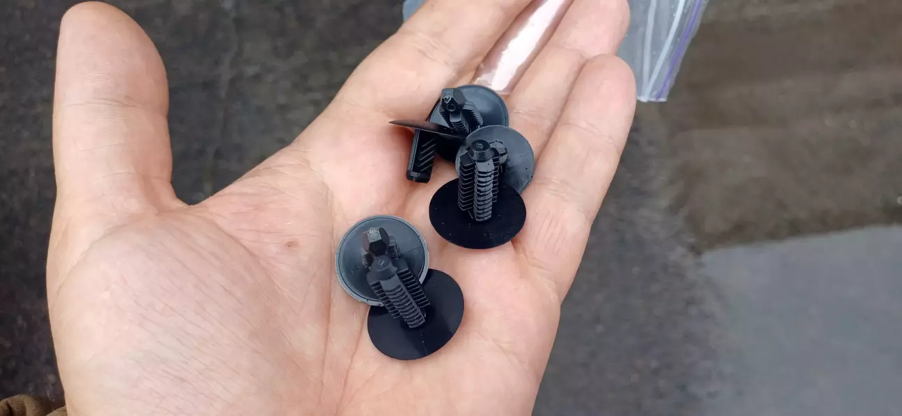 Вирішив цю естетичну проблему звичайними пластиковими кліпсами (заглушками) з широкою шляпкою, які підібрав на авторинку😄