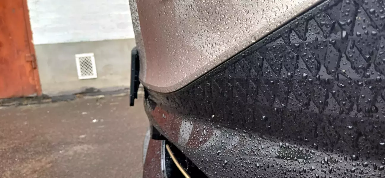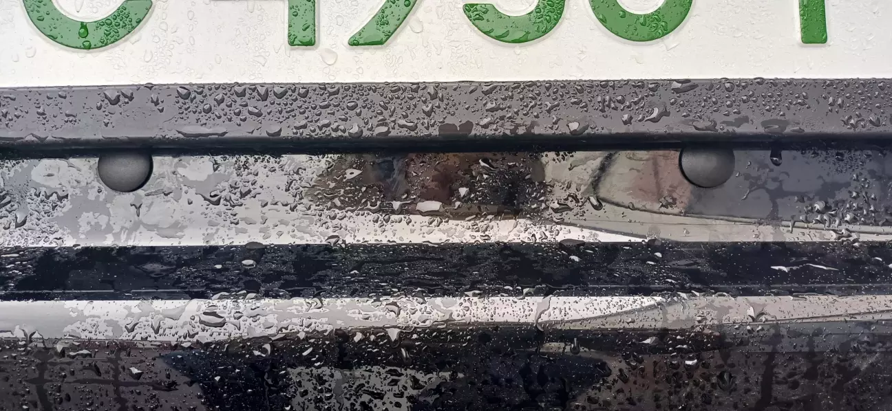 Тепер до задньої частини, там простіше, але все ж є свої нюанси. На заньому бампері присутні 4 отвори (клепальні гайки / різьбові заклепки) для кріплення номеру. При чому вони розташовані так щоб кріпити китайський номер зверху і знизу. А так, як китайський номер вищий, то встановивиши український номер будуть видні або верхні або нижні отвори.