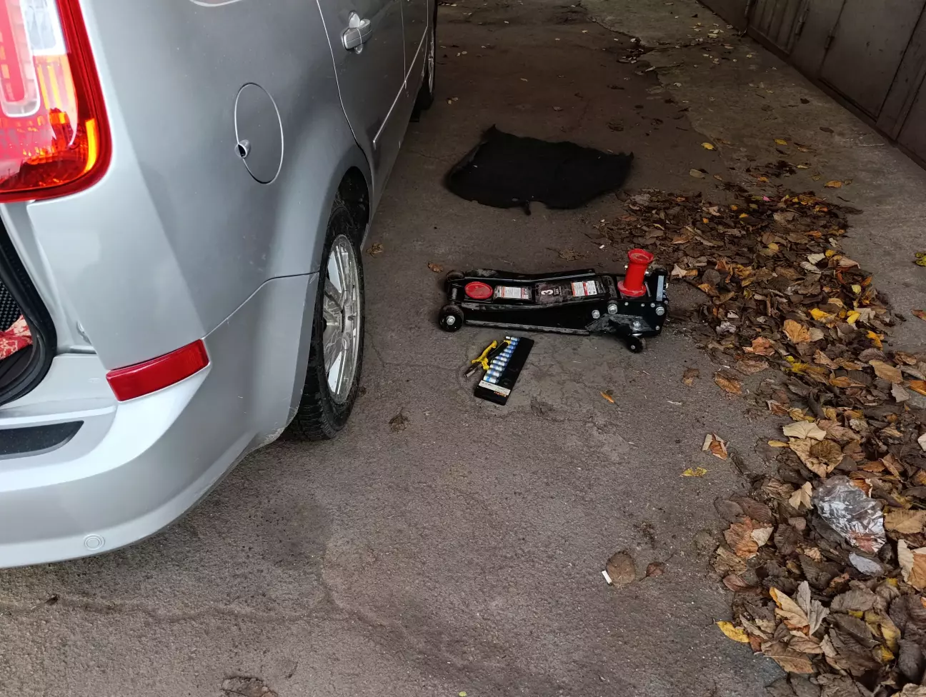 Отримав та го в гараж. З інструменту: балонник, викрутка, плоскогубці та домкрат.