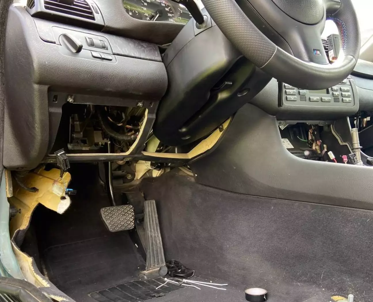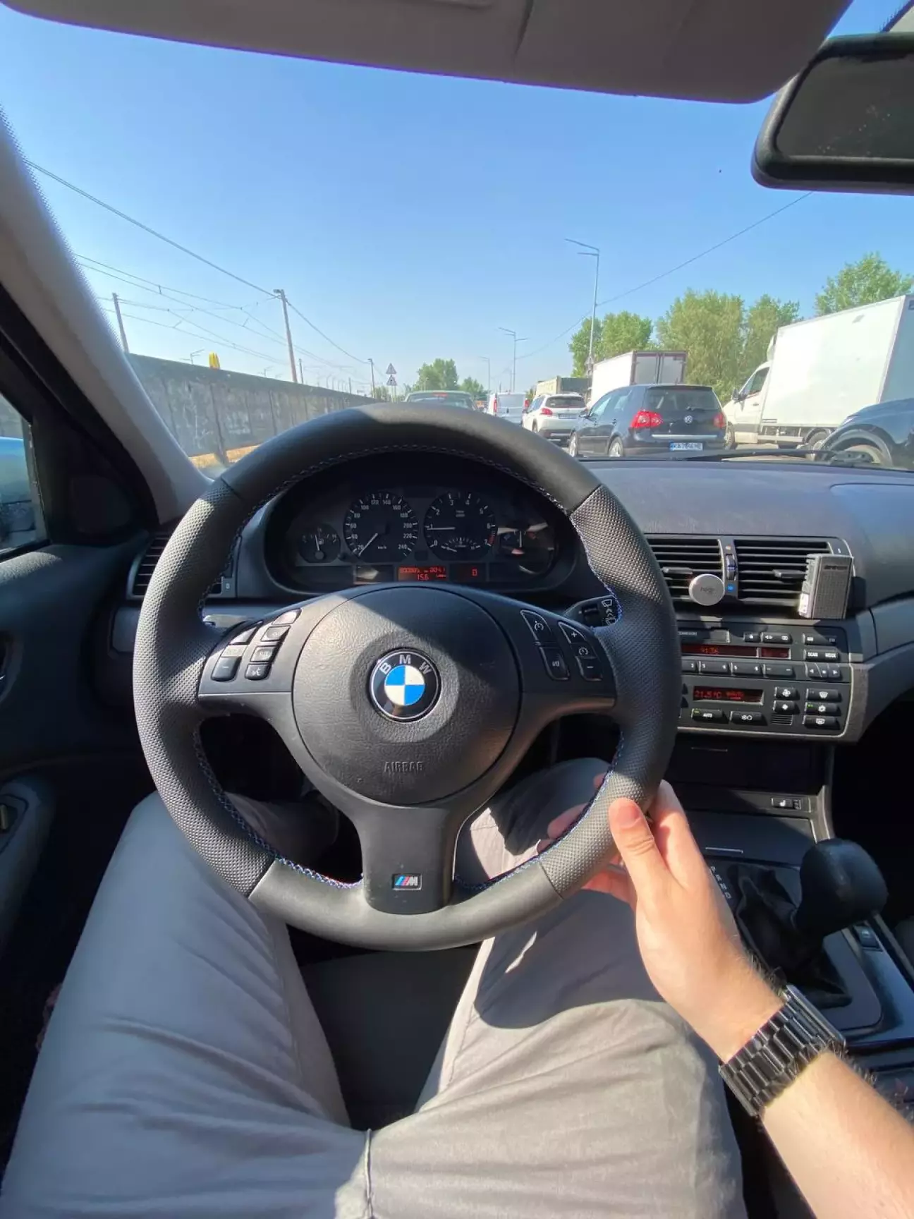 Не долго я продержался перед тем как начать дооснащать эту машину😁. Через неделю владения я уже ждал доставку М-руля, это было первое в планах, так как стоковый руль мне совсем не нравился. К тому же на старом руле уже сильно износилась кожа и ощущения когда его трогаешь были не приятные.